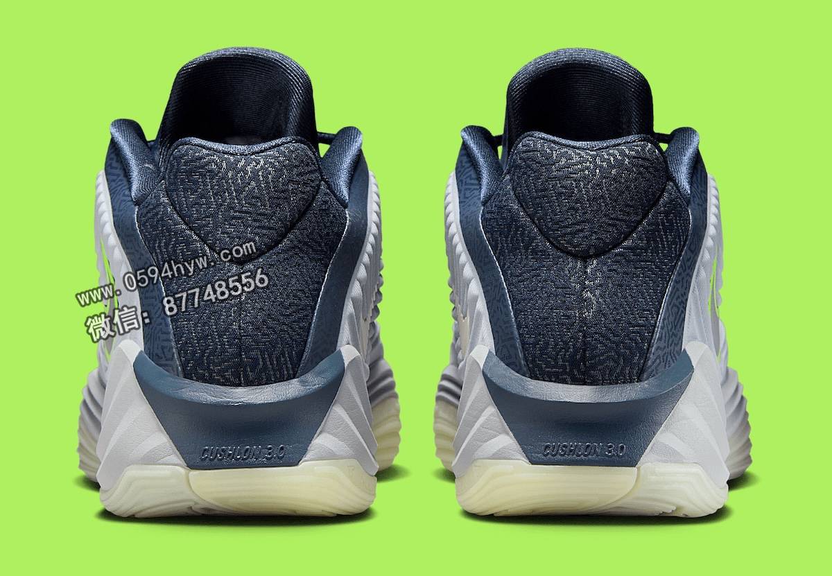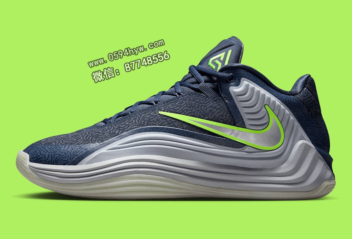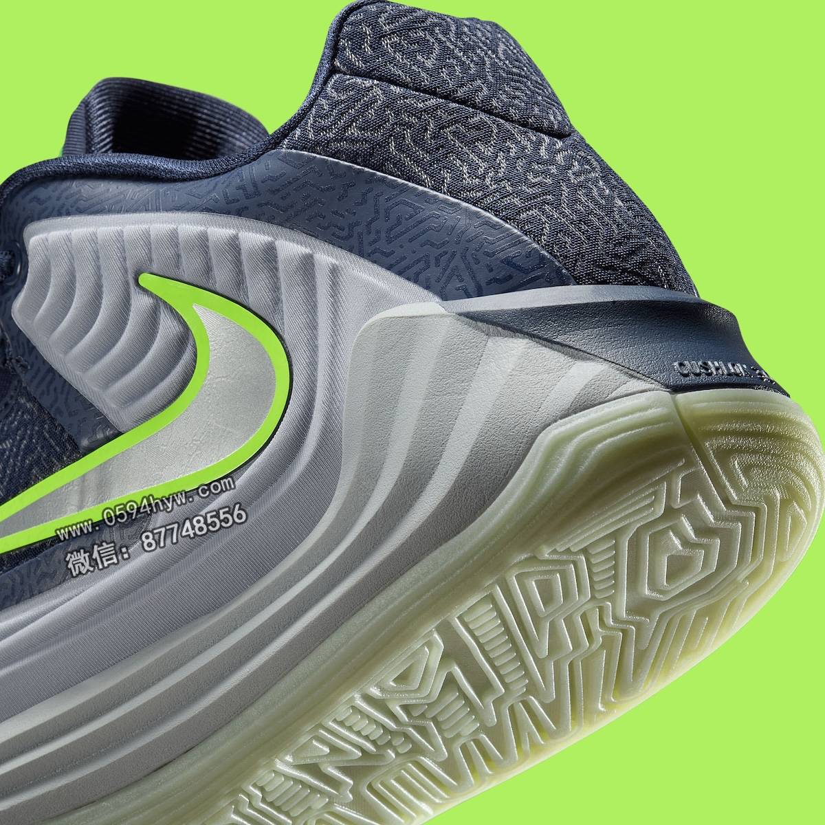 雕刻金属 Swoosh 以伏特绿为轮廓,是鞋侧上方的突出亮点。Giannis Antetokounmpo 的标志性刺绣徽标以霓虹色处理在鞋舌上。