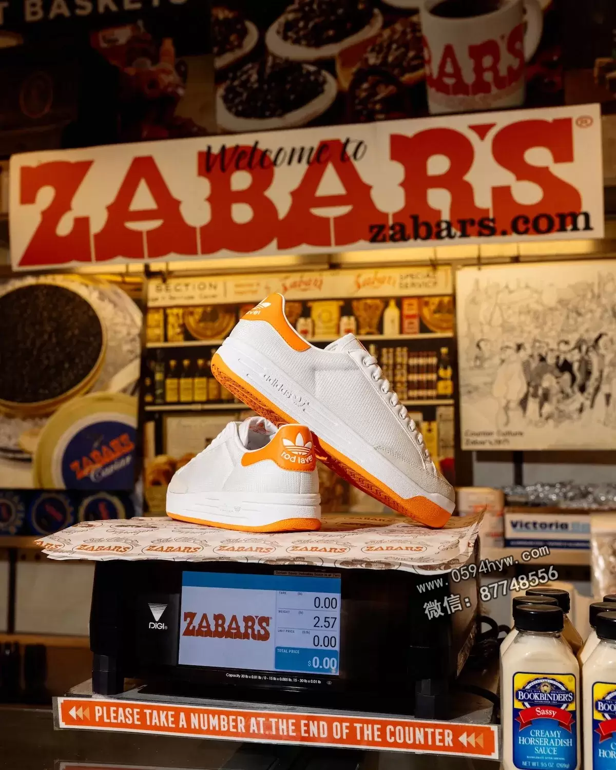 West NYC x adidas Rod Laver “Zabar’s “将熟食文化直接融入运动鞋中。Zabar’s 是上西区的一家标志性商店,今年将满 90 周岁。为了庆祝这一时刻,adidas 和 West NYC 联手打造了一款向这一街区致敬的鞋款。