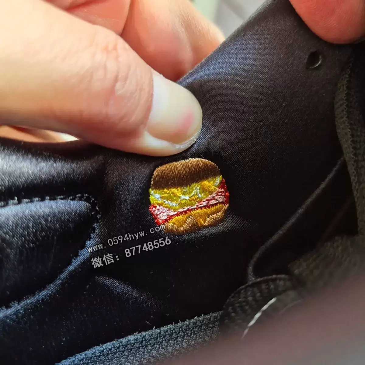 此外,每双运动鞋都配有格栅风格的金色鞋带,鞋带上印有 “BXGS “字样,鞋带尖端印有 “Bronx Girls Skate “字样。鞋跟上有金色的纽约吊坠,而鞋底和鞋舌上则有一系列有趣的隐藏图案,如芝士汉堡和交错的手臂。