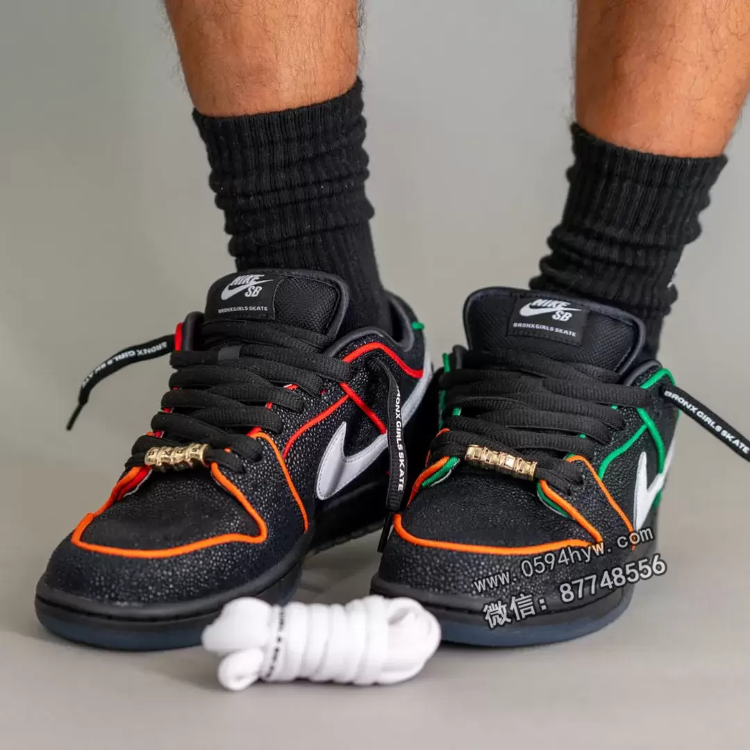 这些细节让 Bronx Girls Skate SB Dunk Low 不仅仅是一双鞋,更让它成为纽约市滑板运动赋权、多样性和自豪感的可穿庆祝活动。