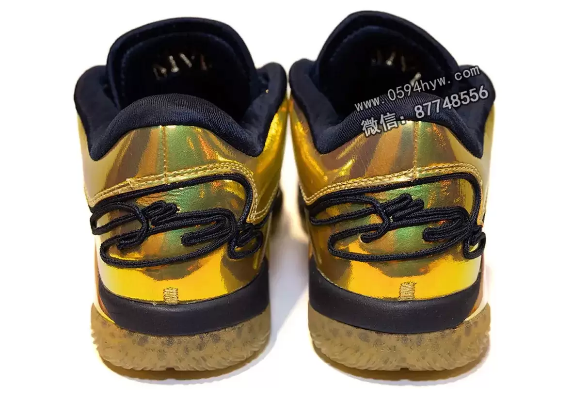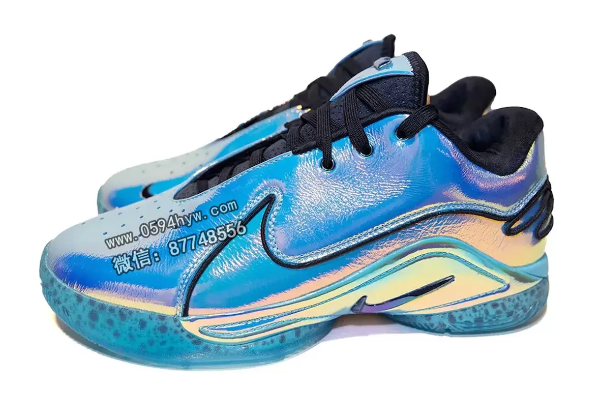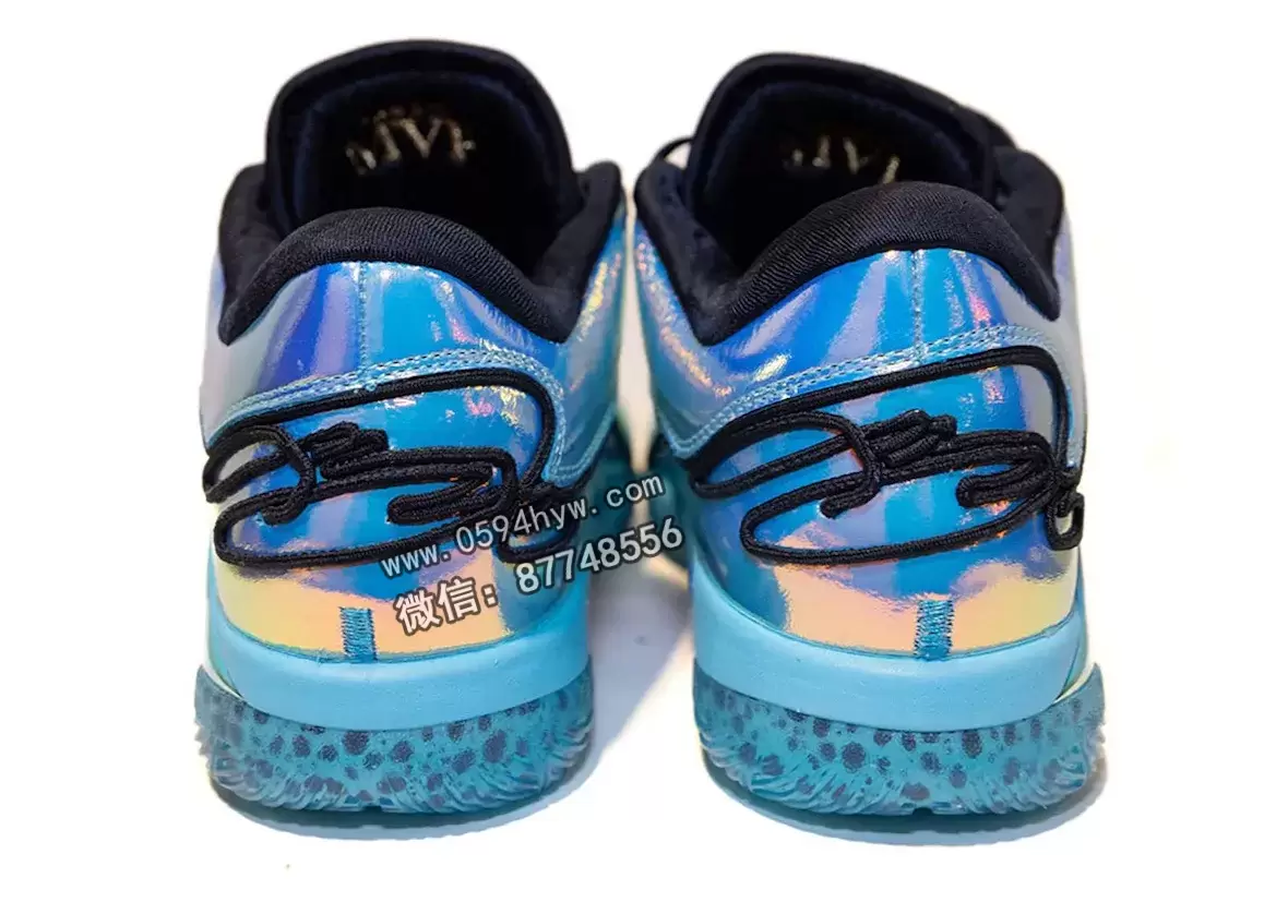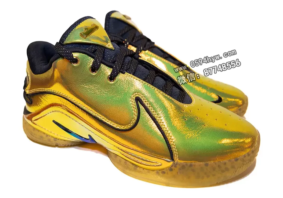 LeBron 22 包包括一对金属配色。其中一款为金色,另一款为彩虹蓝。质感皮革鞋面、反光点缀、定制刺绣细节(包括鞋舌内的 “MVP 2024 “印章)、半透明外底和鞋垫上的大理石耐克 “胜利女神 “印花构成了每双鞋的其他主要设计特色。