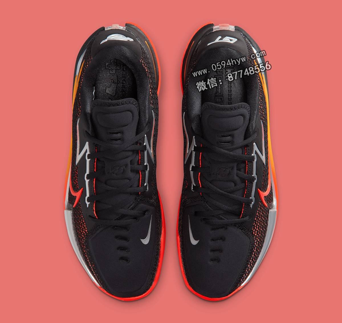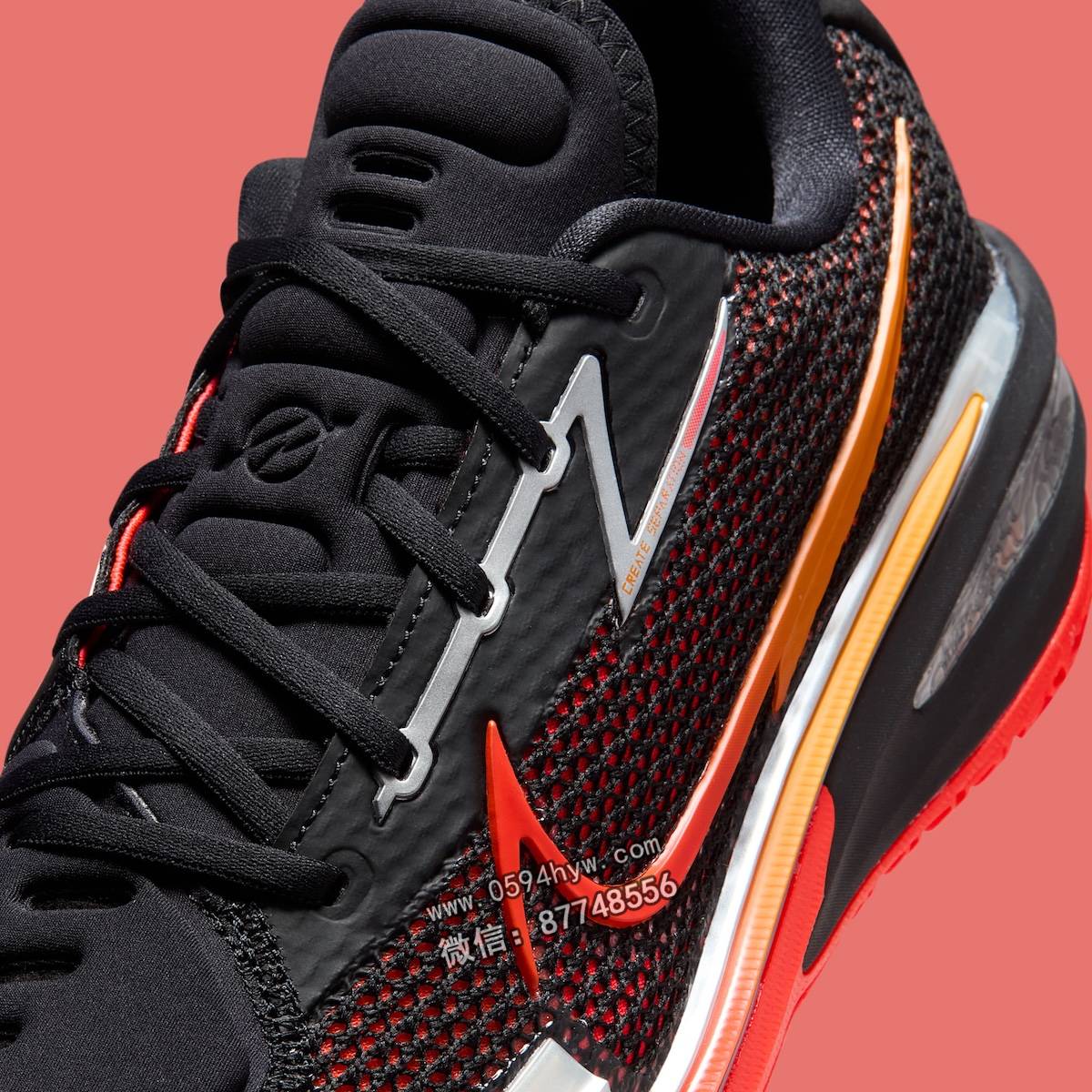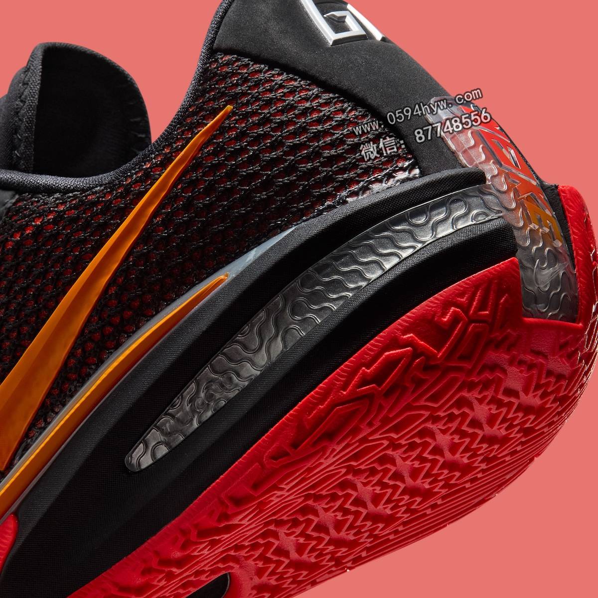 黑色鞋面搭配鲜艳的深红色底衬,每走一步都令人眼前一亮。Swoosh 先是消失在红色陶瓷中,然后变幻成橙色光芒。眼罩、鞋跟和中底的镀铬装饰则进一步提升了这款鞋的设计感。