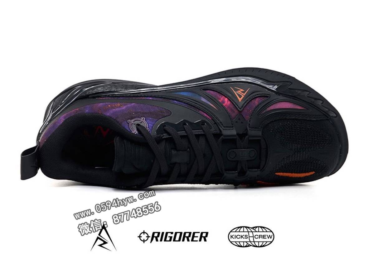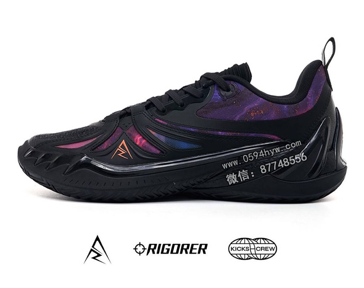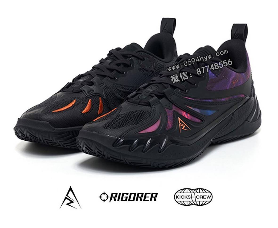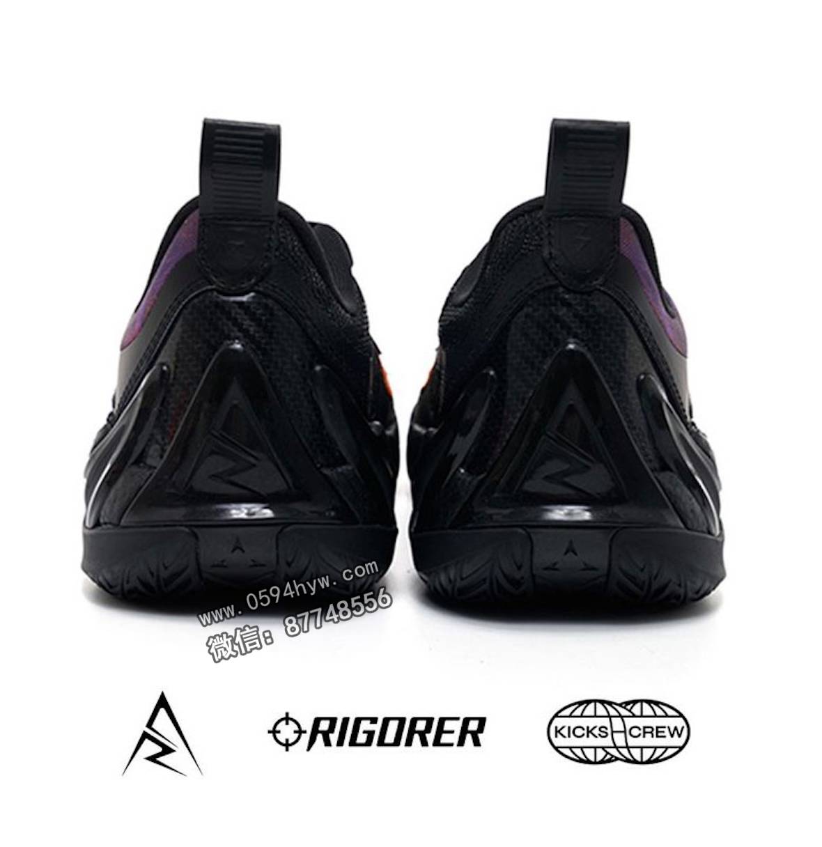 Rigorer AR3 延续了里维斯之前球鞋的成功,采用了类似但更精致、更透气的设计。灵感源自飞翼的鞋面、三重峰值 TPU 后跟支撑和全长 Showtime 泡沫缓震设计为这款球鞋提供了稳定的支撑。X 形 TPU 鞋板和人字形抓地纹路进一步增强了球场表现力。
