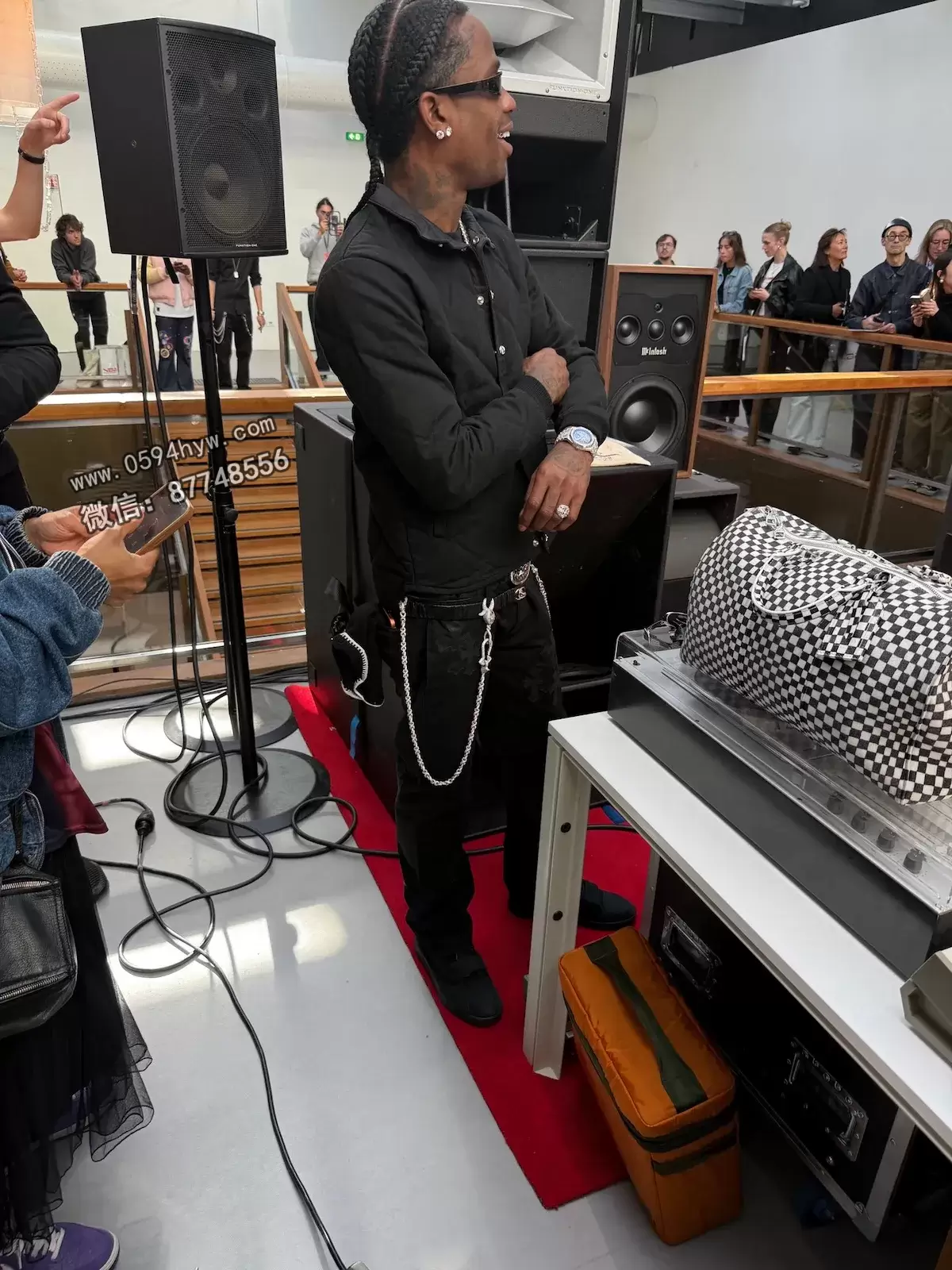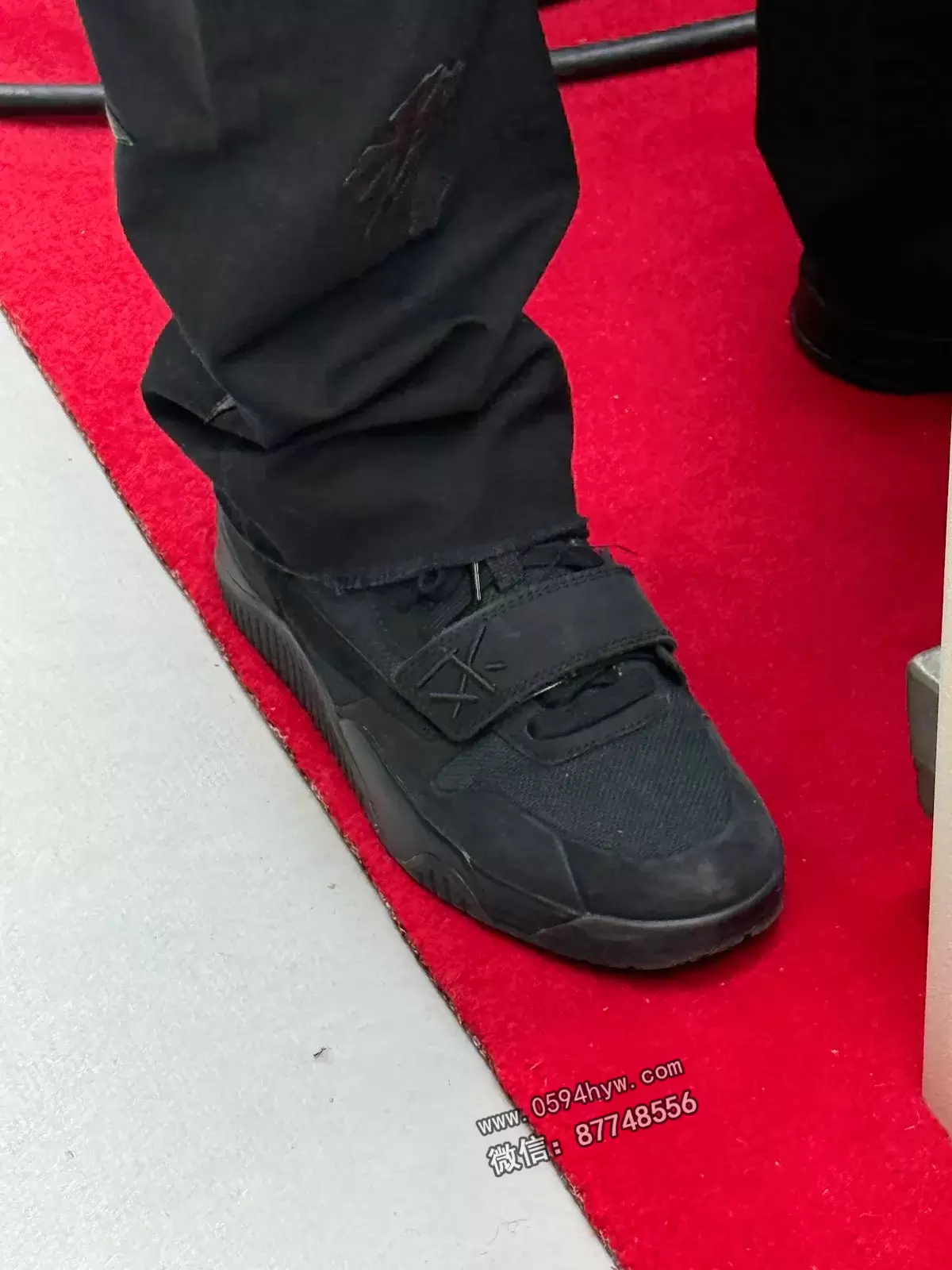 作为 Jordan Brand 最有影响力的合作者,Scott 身着全黑套装亮相,搭配多层链条和装饰品。但真正的亮点是他脚上穿的那双前所未见的Jordan Jumpman Jack “Triple Black”版球鞋。