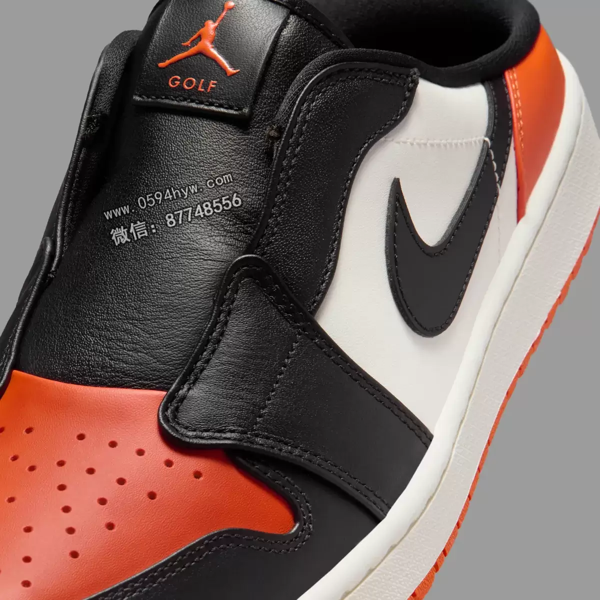 高尔夫球鞋的功能也被放在首位,采用标志性的橙色无钉牵引设计,旨在确保稳固的脚步。鞋舌标签上还有一个 Jordan Golf 标志,取代了常见的品牌标识,但保留了 Jumpman 标志。它采用了 “骡子 “设计,穿脱方便,同时又不失高级感。