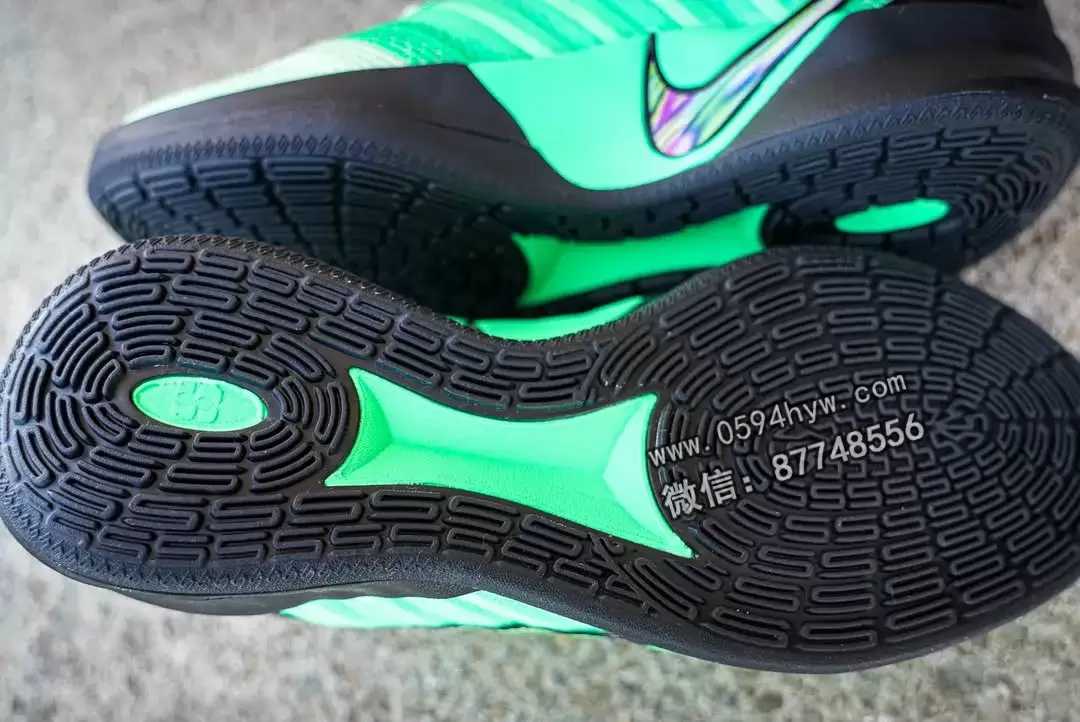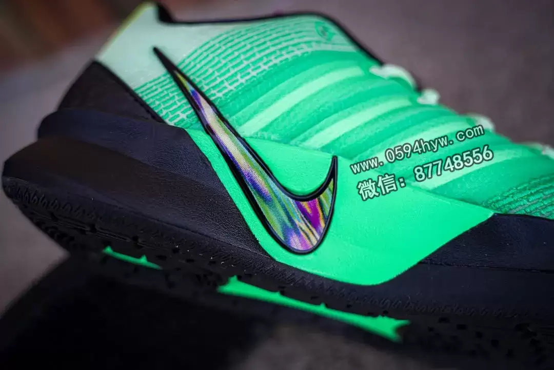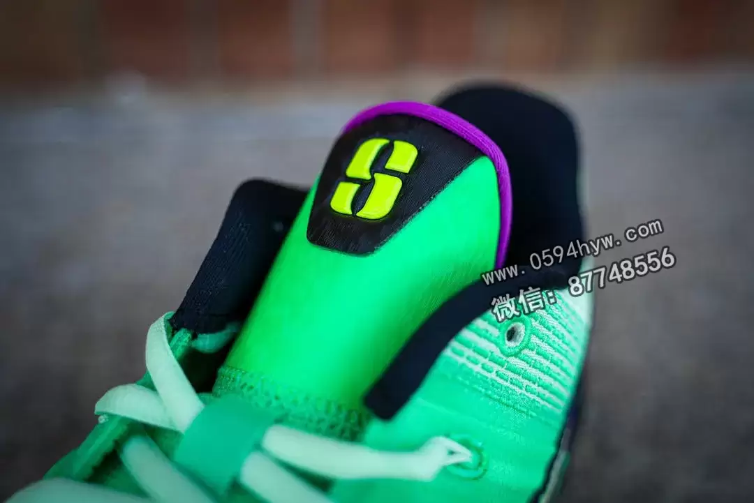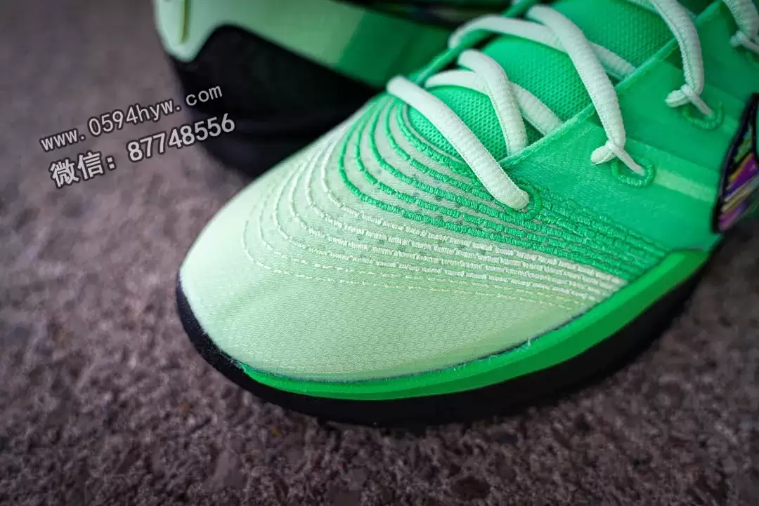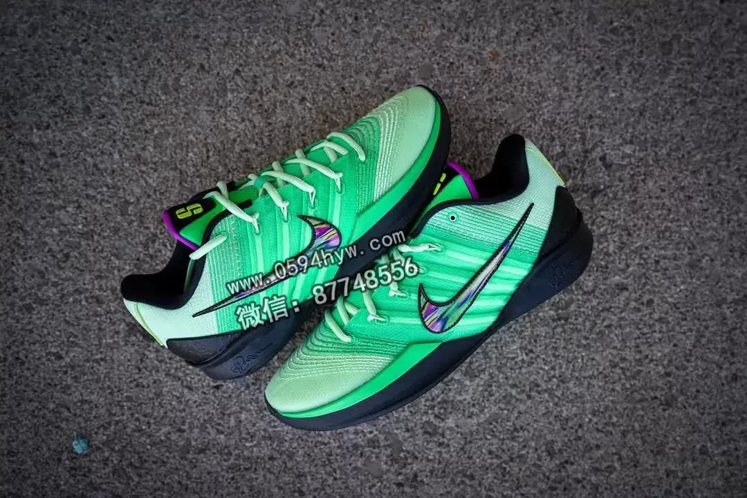 这款 Sabrina 3 变体鞋采用鲜艳的绿色网眼鞋面,轻盈透气,两侧饰有大理石花纹的多色 Swoosh。鞋舌内衬和后跟标签上也有紫色亮点,鞋舌上印有她的签名 “S “标志,标志着这是一款球员专属鞋款。鞋底采用黑色 Zoom Air 中底技术,提供灵敏的缓震效果,确保这款鞋在球场上也能表现出色。