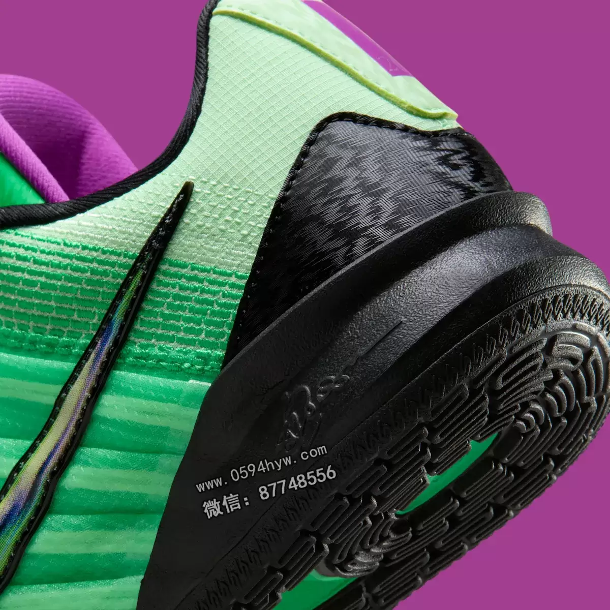 这款鞋的色调来自 Ionescu 的 NBA 2K24 WNBA 封面,封面采用了绿色、紫色和蓝色的放射状渐变色调。耐克采用了相同的颜色,向她在球场上取得的成功表示敬意,这也是前所未有的。对于球鞋爱好者来说,篮球传说和游戏文化的重叠是非常罕见的。