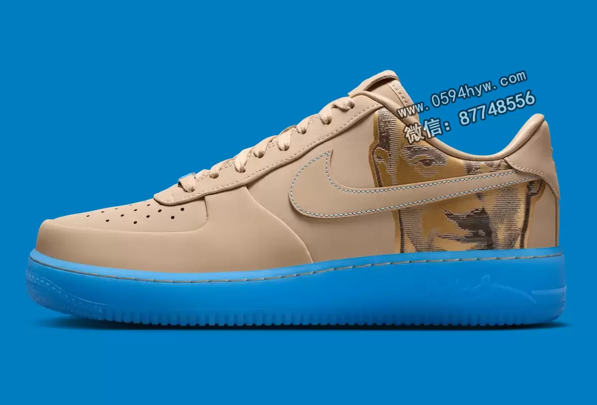 这款球鞋汇聚了 Air Force 1 和科比-布莱恩特本人两大传奇。这双鞋采用亚麻皮革鞋面,配以醒目的大学蓝鞋底。然而,这款鞋最突出的细节是向科比本人致敬,因为鞋后跟面板上有一个向科比致敬的微妙肖像图案。这个图案是对 2007 年发布的 Kobe Bryant x Nike Air Force 1 “Kobe “的明确回溯,当时的鞋跟同样采用了肖像设计。