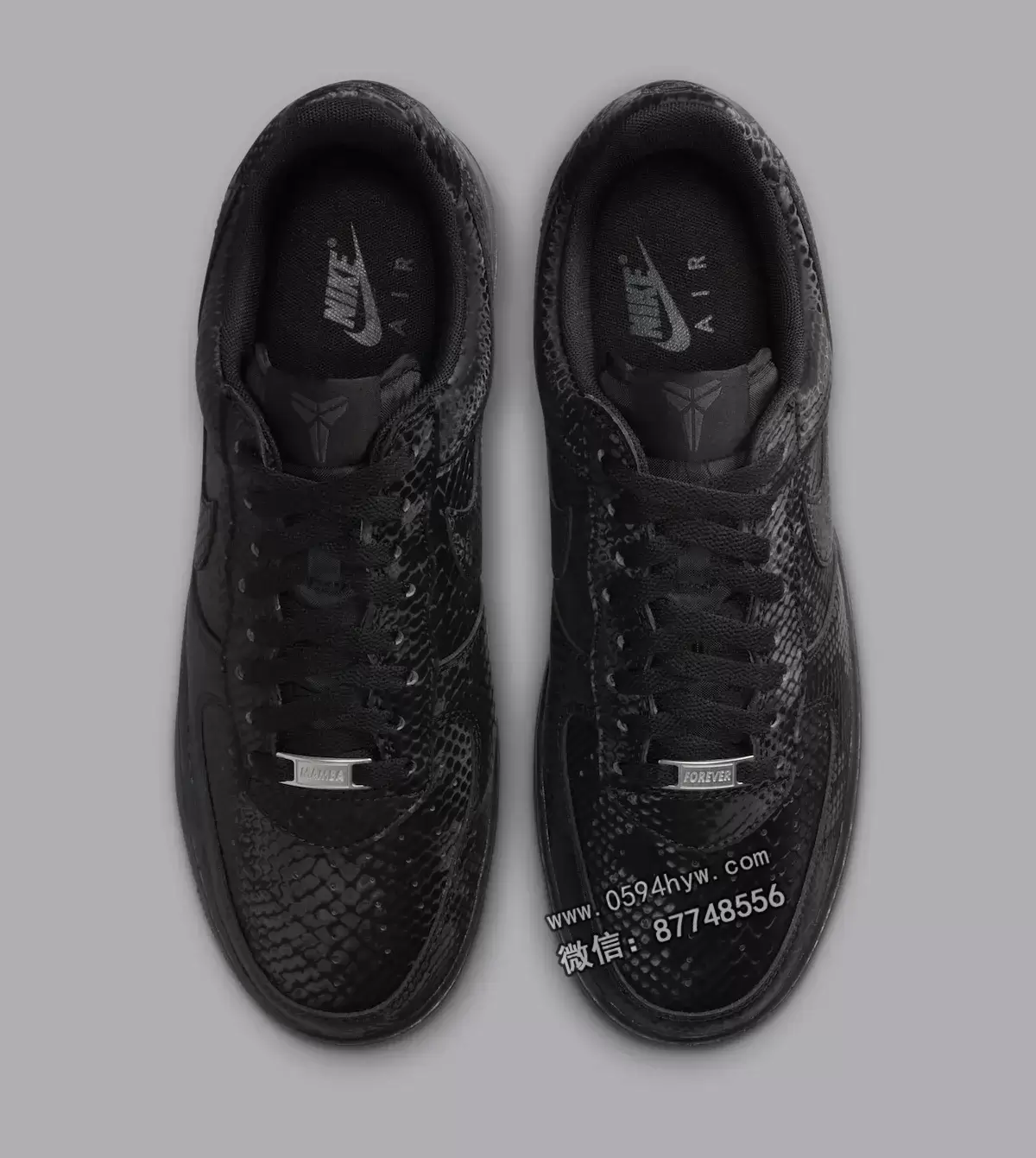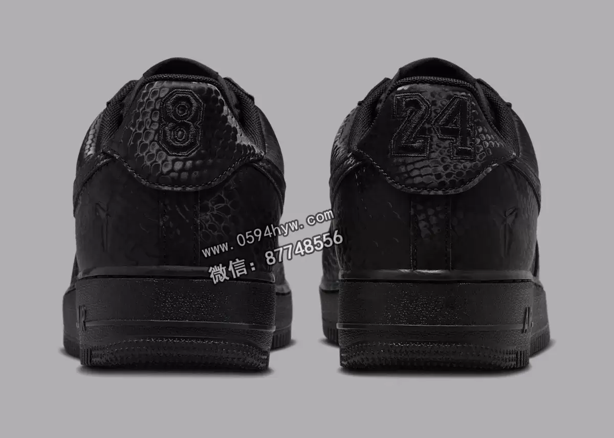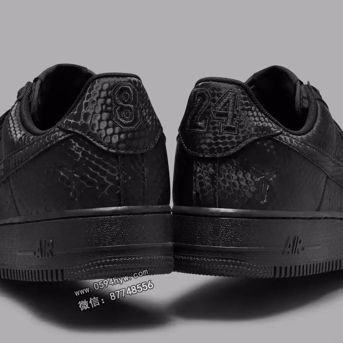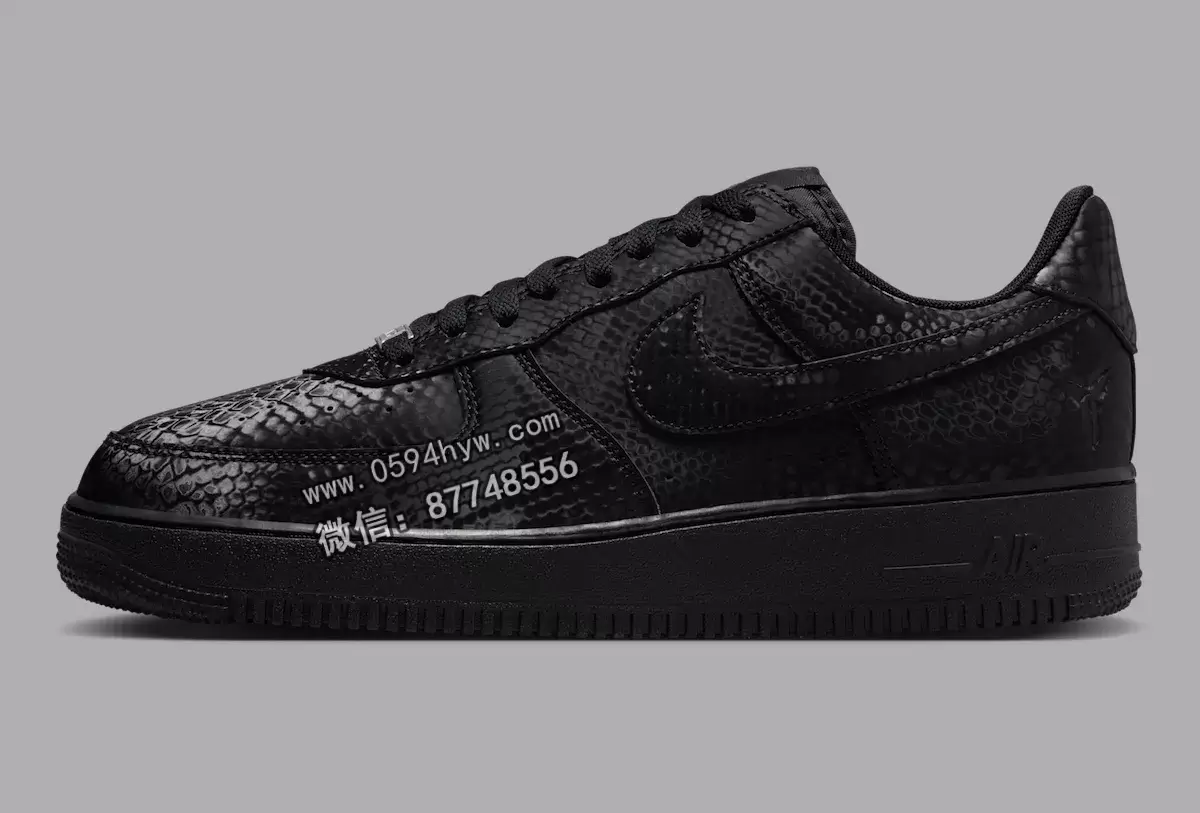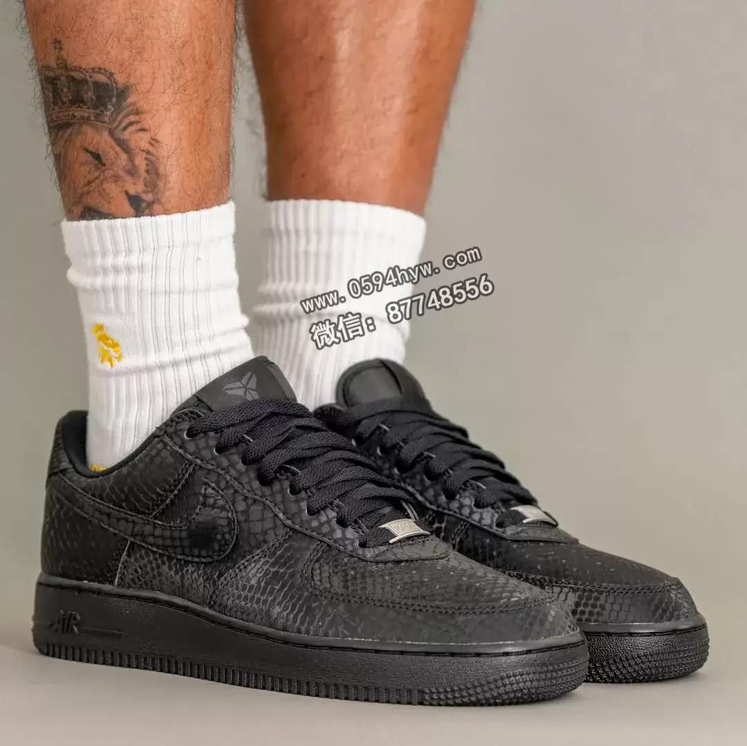 Nike Kobe Air Force 1 Low “Triple Black “运动鞋在强调布莱恩特 “曼巴 “形象的同时,也不失华丽。鞋面上的蛇皮图案和全黑的鞋身,以及对科比的低调引用,让这款球鞋可以在更休闲的场合穿着。此外,这款鞋还具有额外的吸引力,让人感觉它是一款特别版,收藏家和粉丝们都想将其加入自己的收藏。