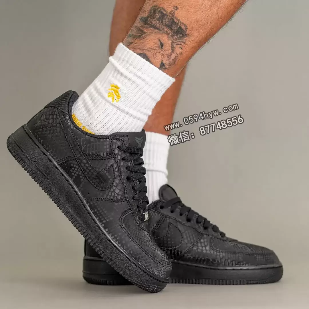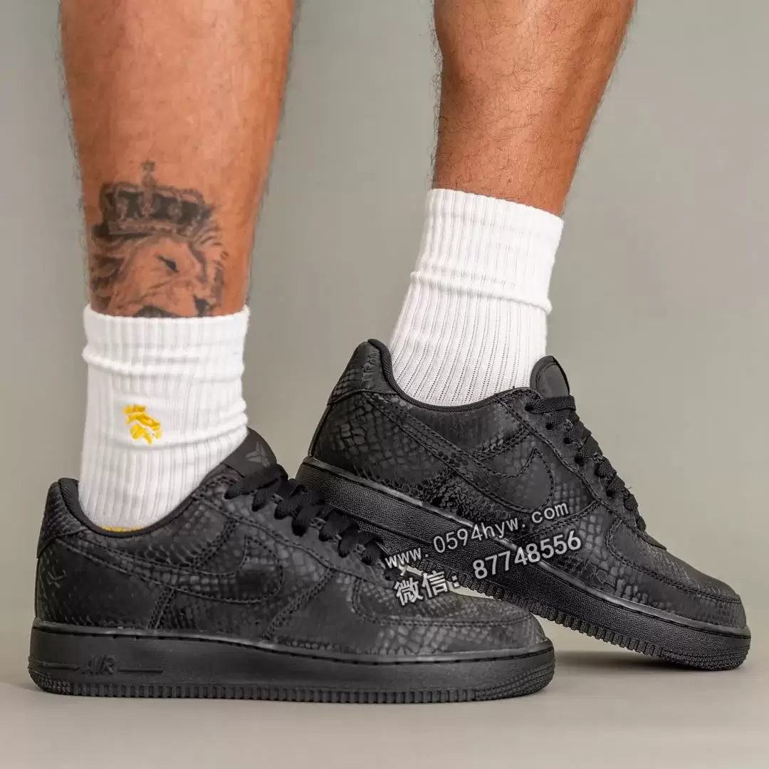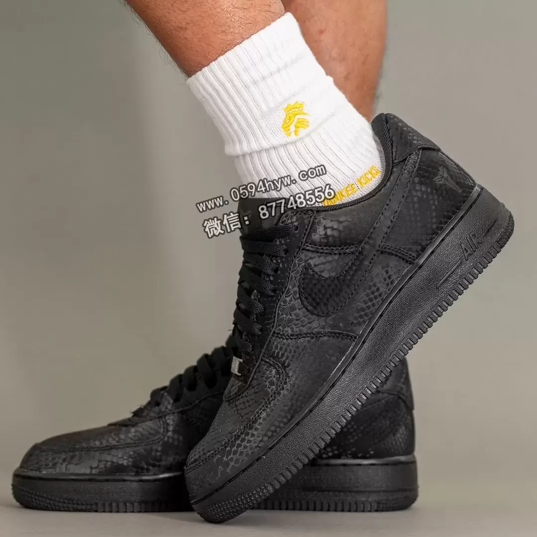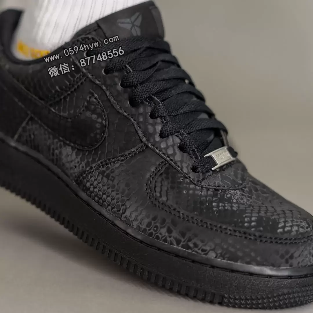 Nike Kobe Air Force 1 Low “Triple Black “运动鞋在强调布莱恩特 “曼巴 “形象的同时,也不失华丽。鞋面上的蛇皮图案和全黑的鞋身,以及对科比的低调引用,让这款球鞋可以在更休闲的场合穿着。此外,这款鞋还具有额外的吸引力,让人感觉它是一款特别版,收藏家和粉丝们都想将其加入自己的收藏。