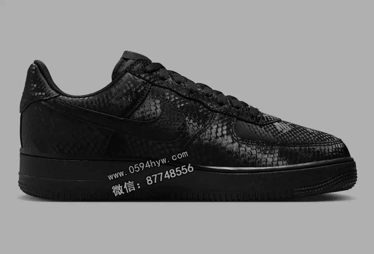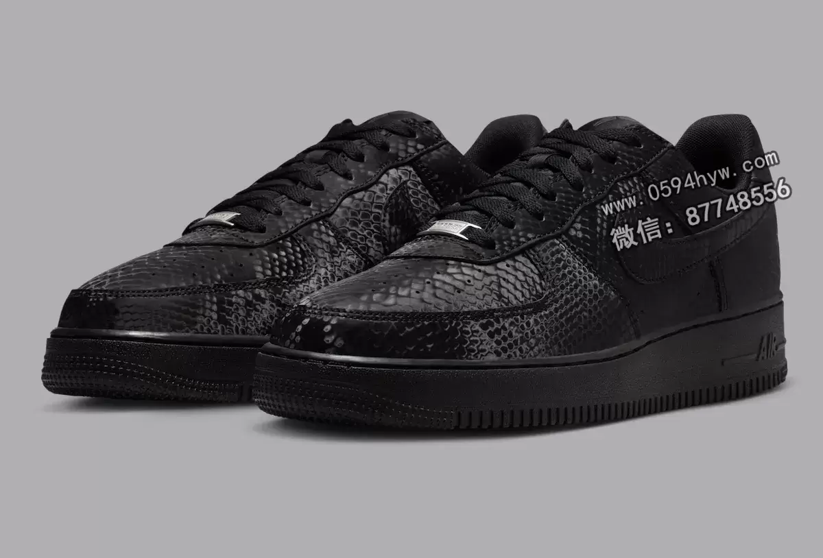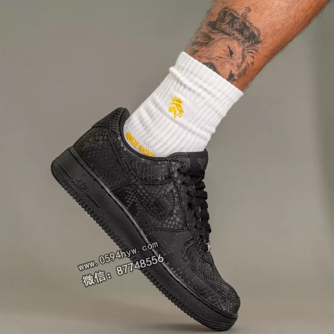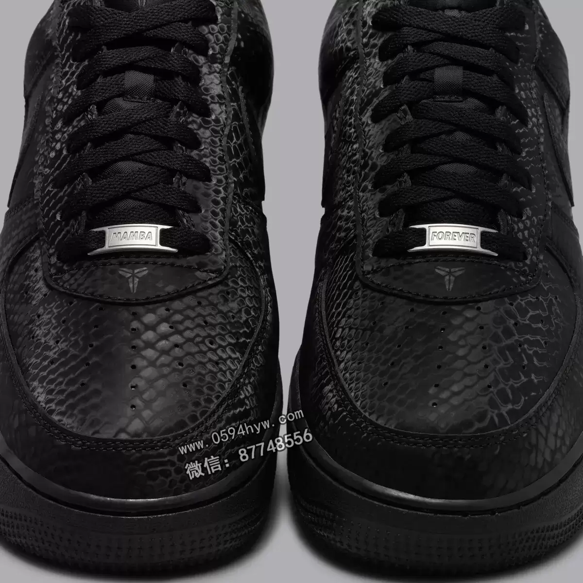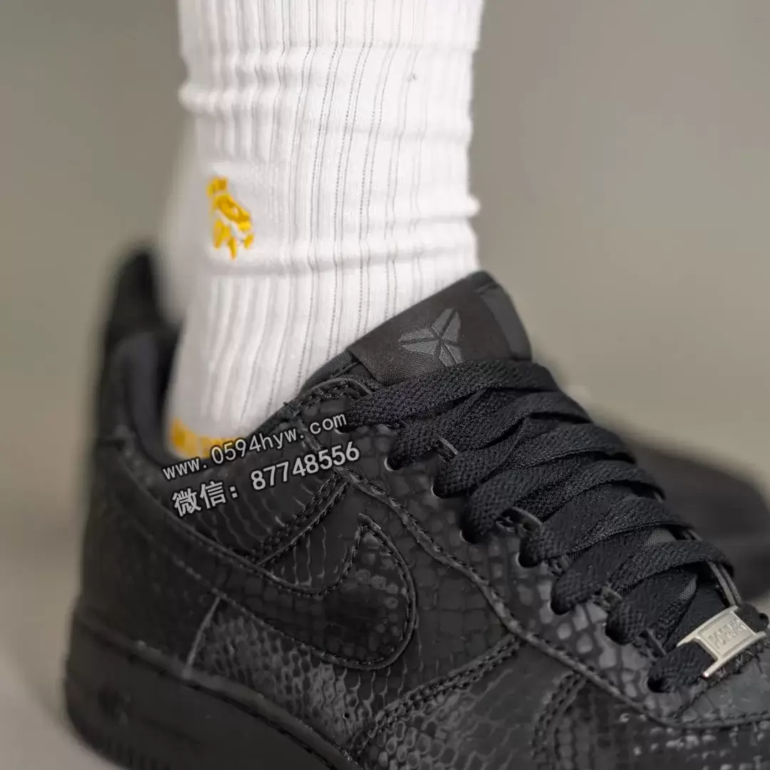 Nike Kobe Air Force 1 Low “Triple Black “运动鞋在强调布莱恩特 “曼巴 “形象的同时,也不失华丽。鞋面上的蛇皮图案和全黑的鞋身,以及对科比的低调引用,让这款球鞋可以在更休闲的场合穿着。此外,这款鞋还具有额外的吸引力,让人感觉它是一款特别版,收藏家和粉丝们都想将其加入自己的收藏。