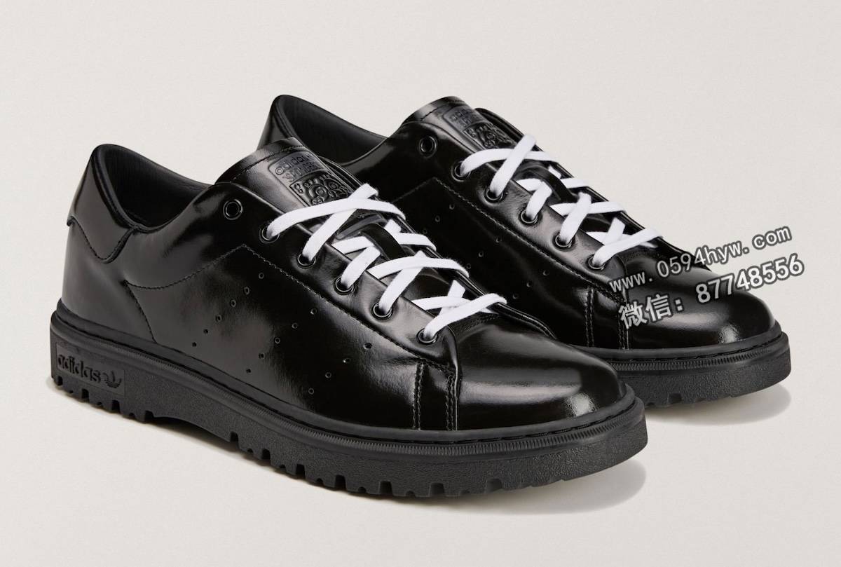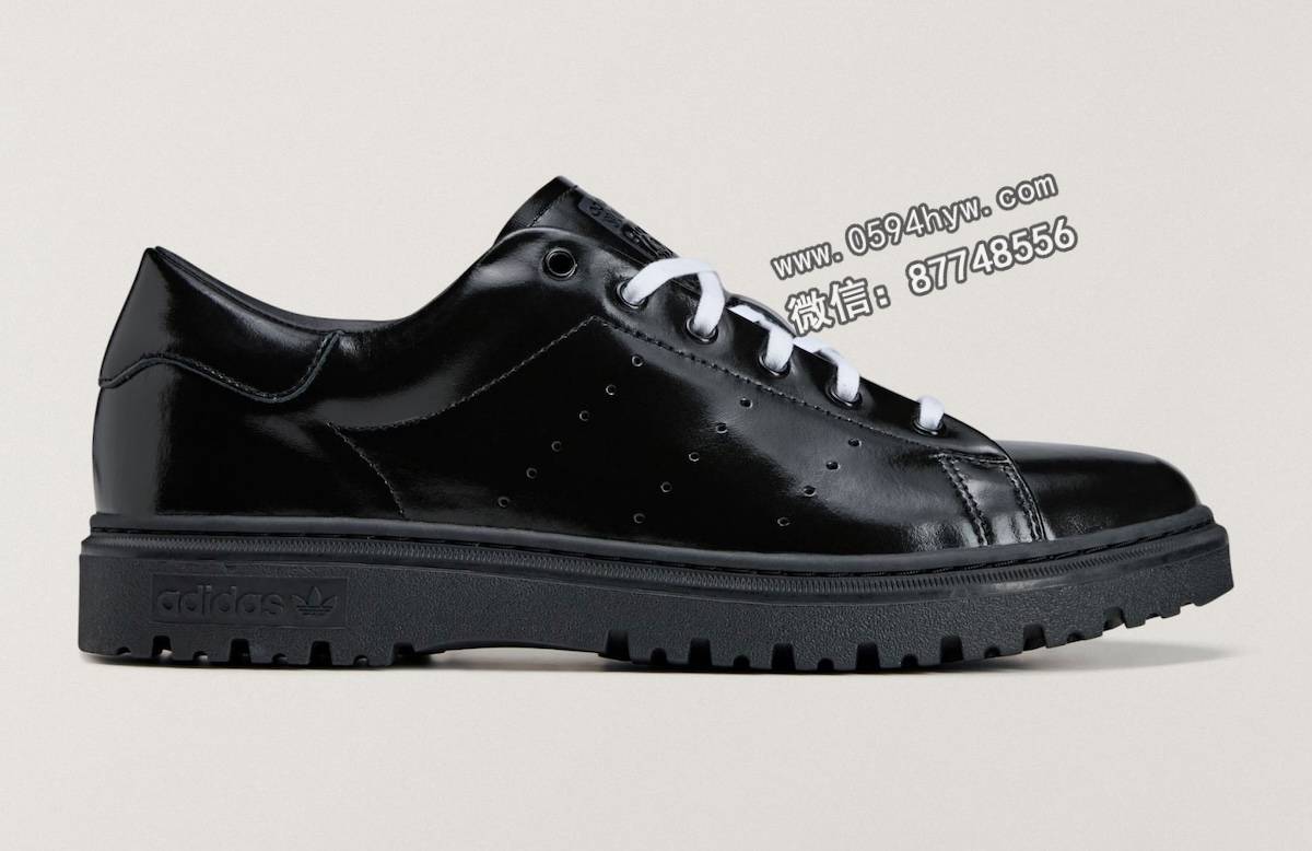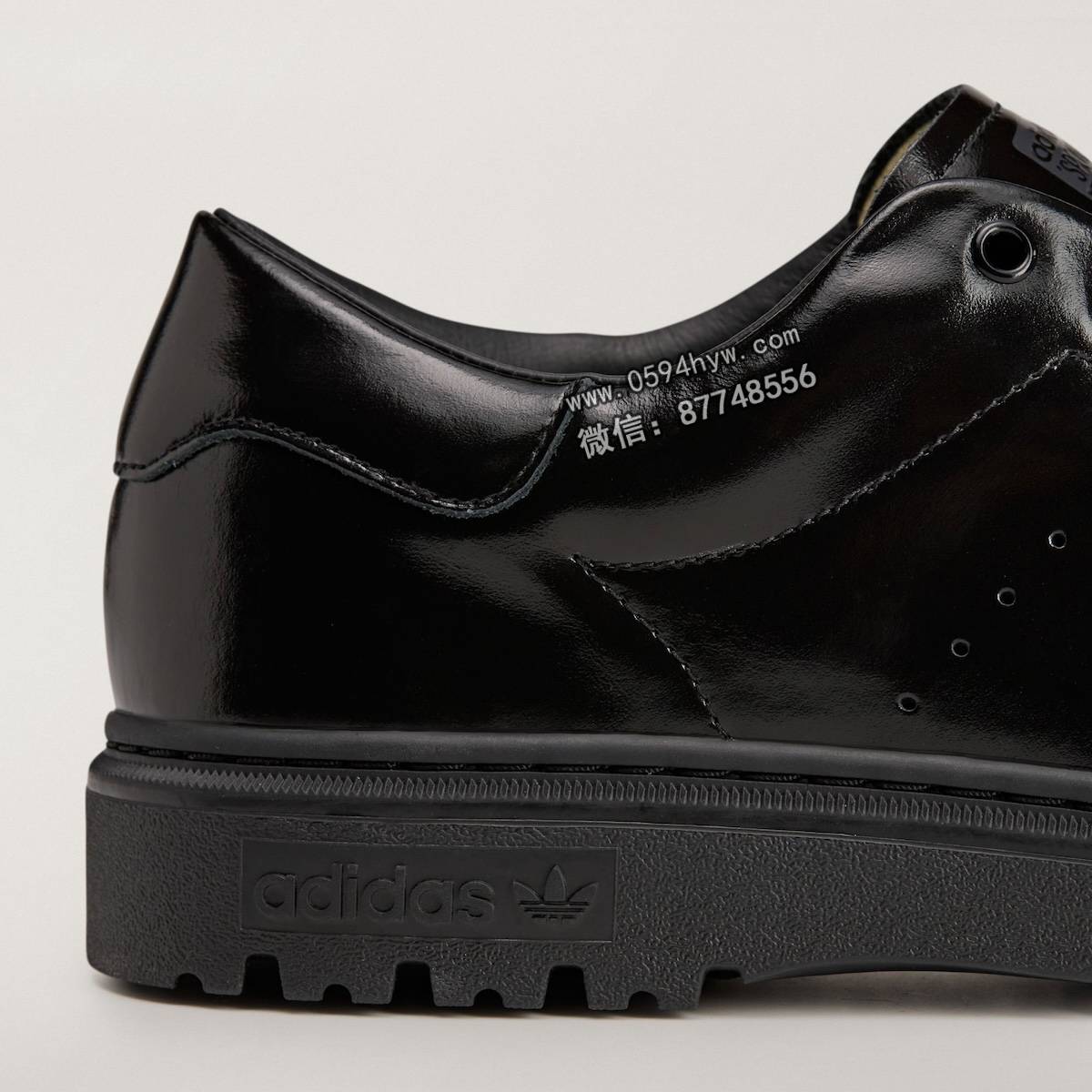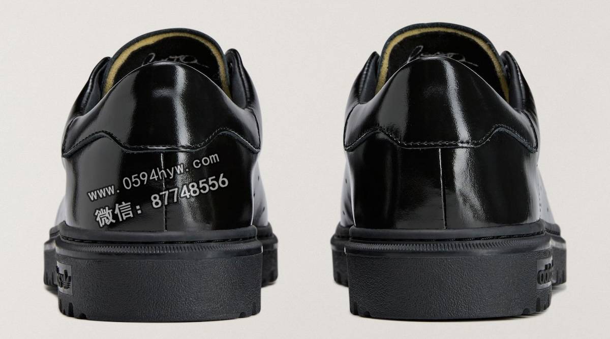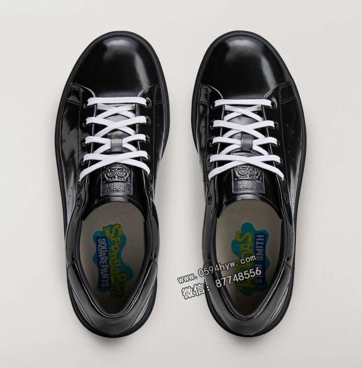海绵宝宝x adidas Stan Smith Freizit以海绵宝宝标志性的黑色亮面工作鞋为灵感,重塑了海绵宝宝标志性的经典鞋型。