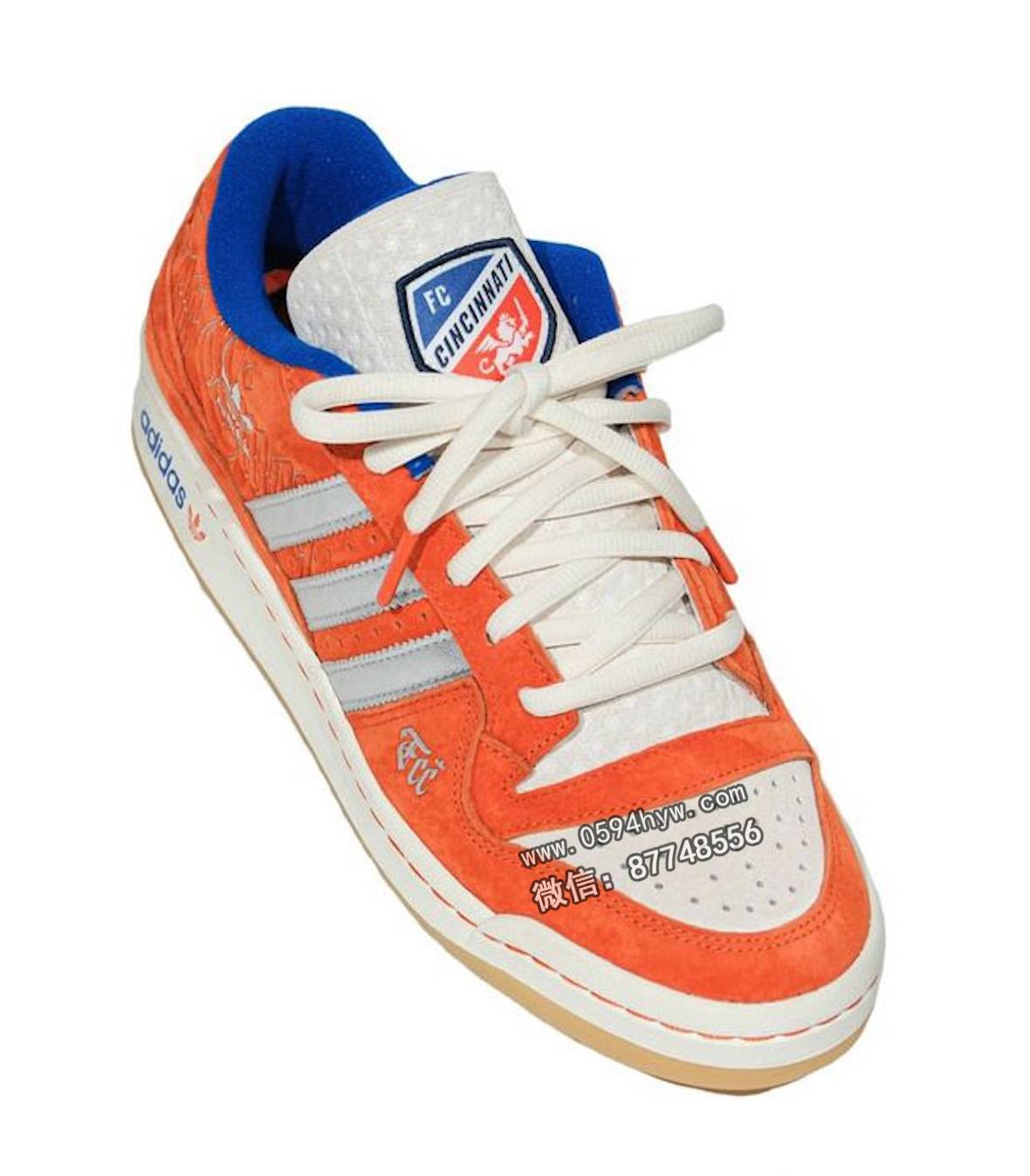 更新 10/18/25:Philip Lipschutz 发布了 Unheardof x FC Cincinnati x adidas Forum Low “All for Cincy” 合作款的全新蓝色版本。除了之前的橙色款,两款配色均定于 10 月 24 日在 Unheardof Cincinnati 独家发售。