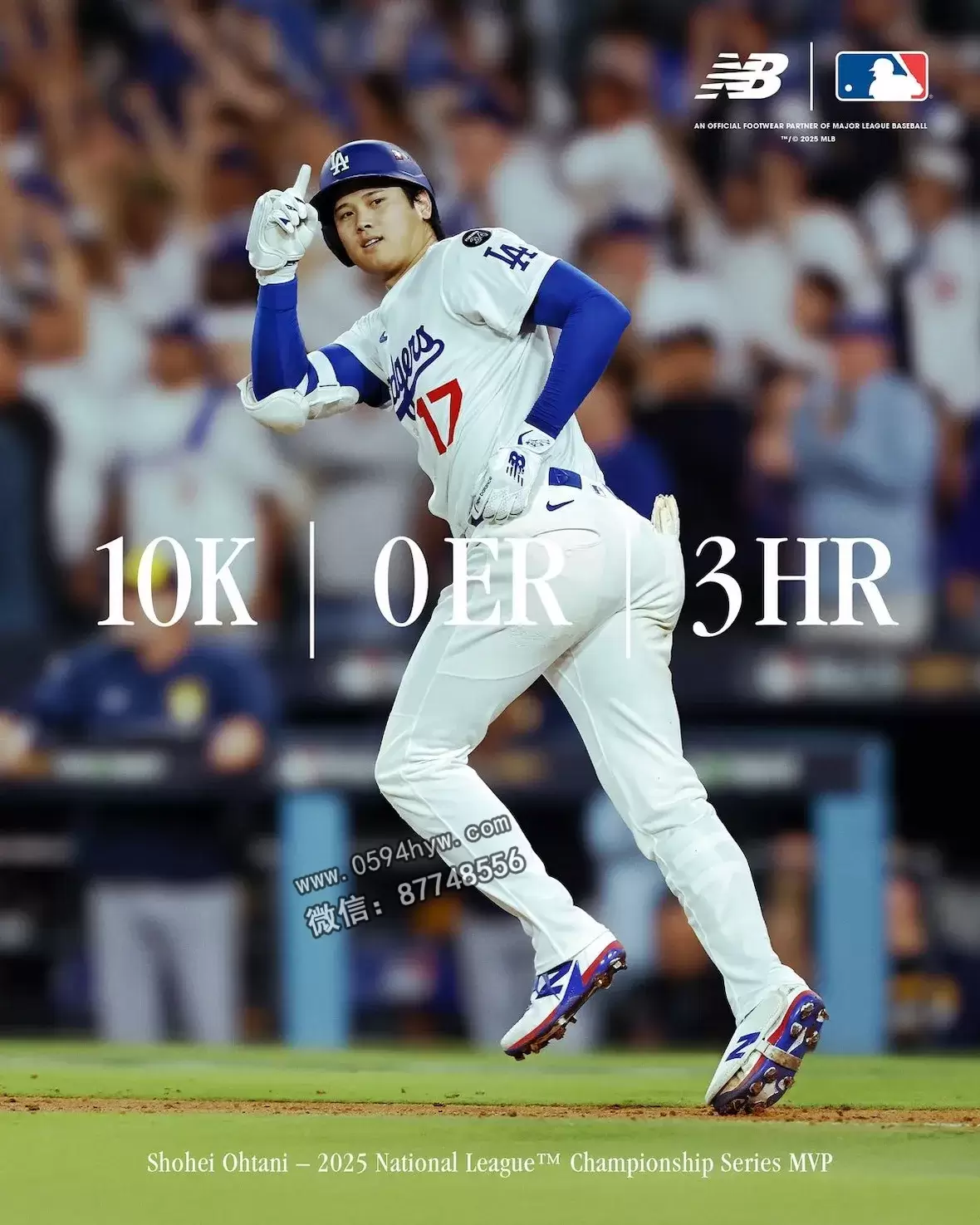 大谷翔平又一次创造了历史。- New Balance 很荣幸能与他并肩作战。大谷翔平在季后赛中创下了10 次三振出局、零自责分率和3 次本垒打的纪录,并获得了 2025 年全国联赛冠军系列赛 MVP。