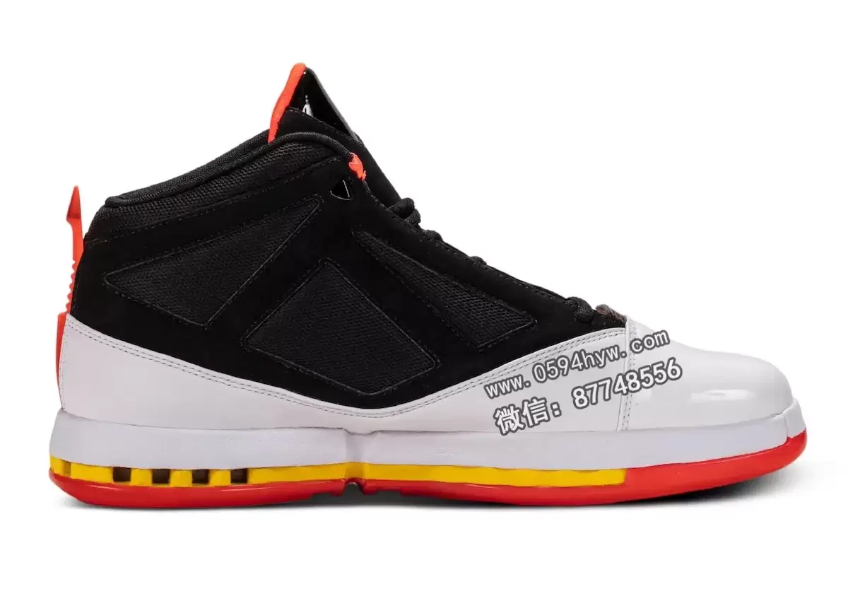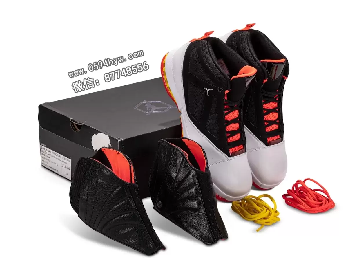 Air Jordan 16 最初于 2001 年推出,标志着迈克尔-乔丹在华盛顿奇才队的复出,因其可拆卸的护罩和奢华的设计理念而脱颖而出。这款 OVO 版本保留了这一基因,鞋头采用清爽的白色漆皮,黑色绒面革包边,华丽的红外大底搭配黄色中底,令人回想起 2000 年代早期的活力。