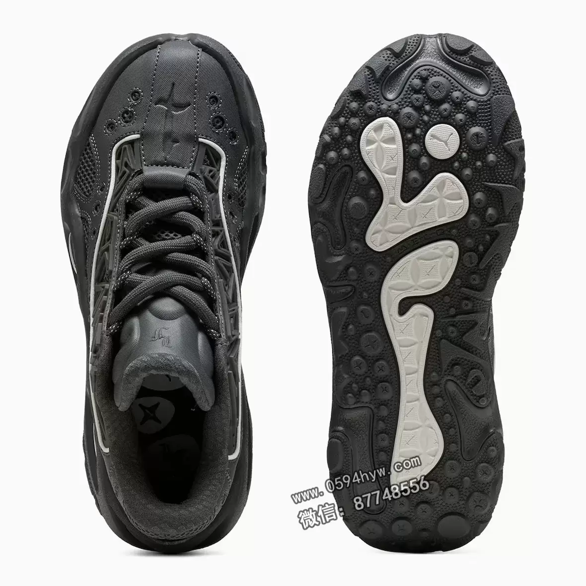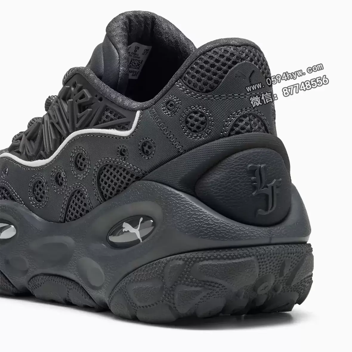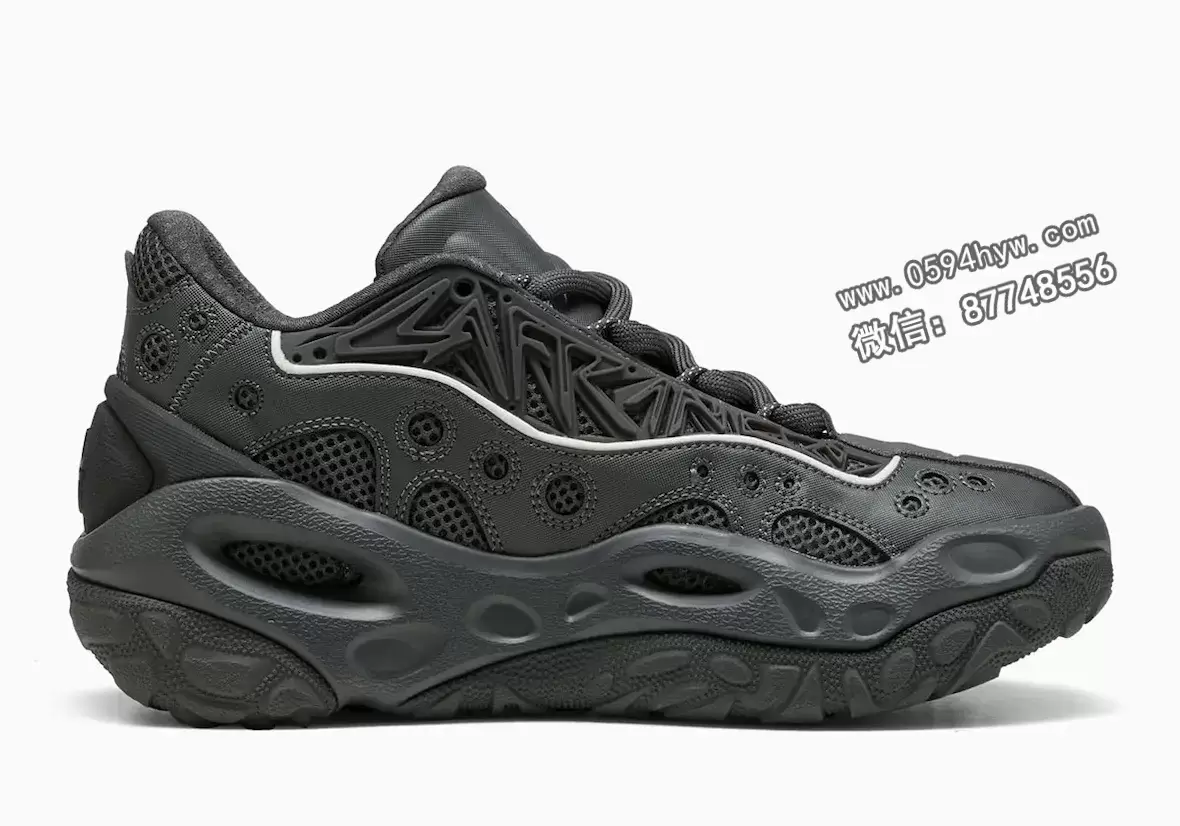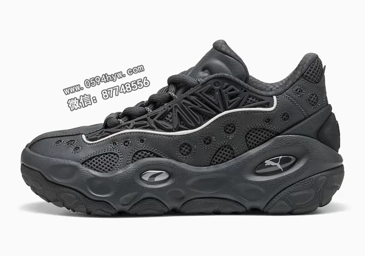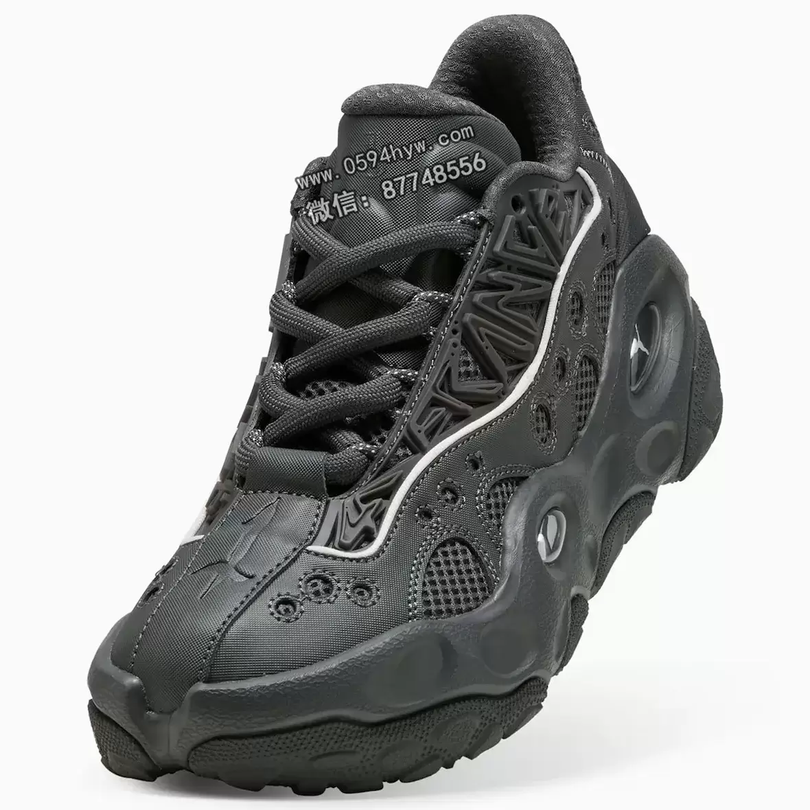 鞋身采用时尚的三重黑 “灰 “色调,鞋底镶嵌有微妙的白色滚边和 PUMA 徽标。这正是运动鞋爱好者一眼就能注意到的细节。