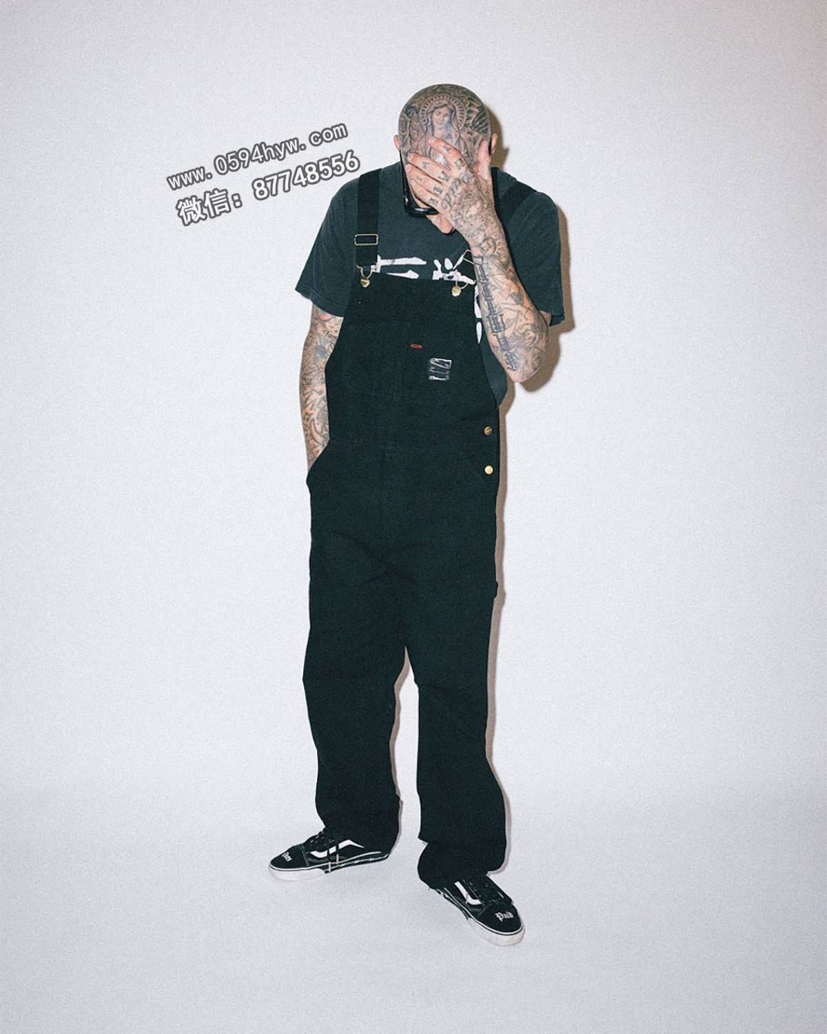 受他胸前纹身的启发,鞋舌上缝制了 Boombox 标识。同时,中底周围的铁丝网向他膝盖上的纹身致敬。脚趾框上印有手写的 “Dues Paid”(会费已付)字样,这是对他指关节纹身的参考,也代表了他的磨练和清醒。