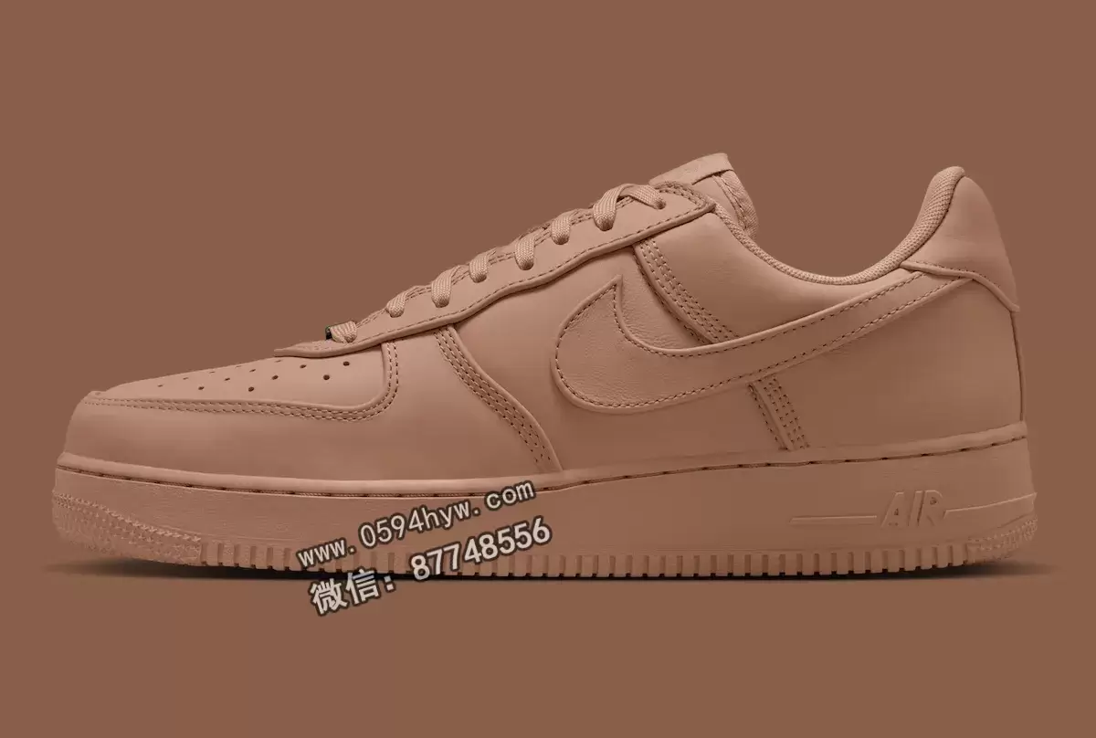 闪亮的米色绒面革覆盖了鞋面的每一寸肌肤。不过,这可不是一双普通的鞋。最明显的区别是鞋跟标签上没有 Nike Air 徽标。这很容易让 AF1 的忠实拥护者一眼就看出这双鞋更精致、更有精品气质。