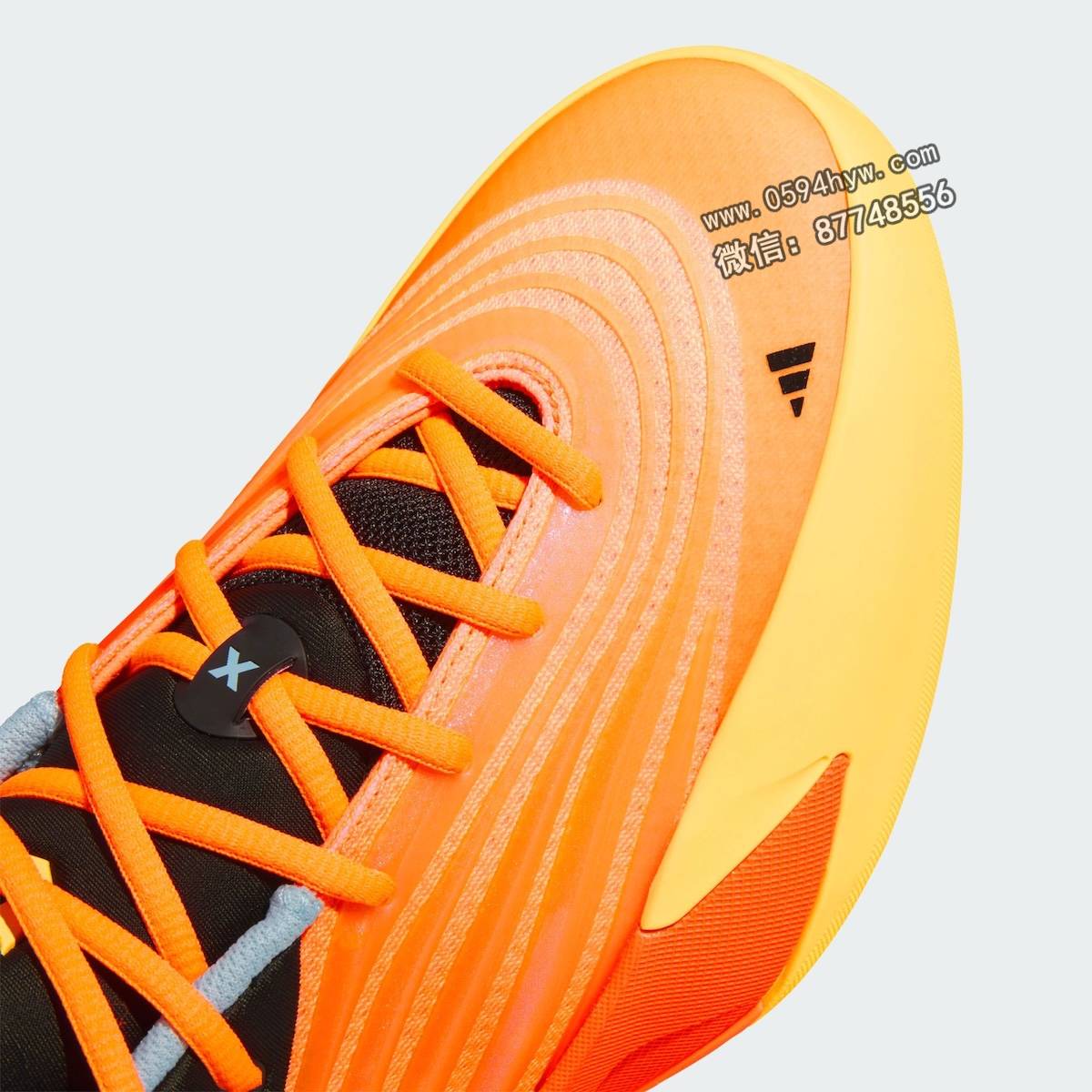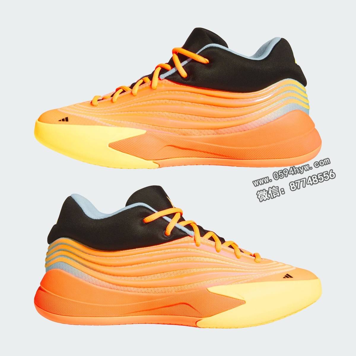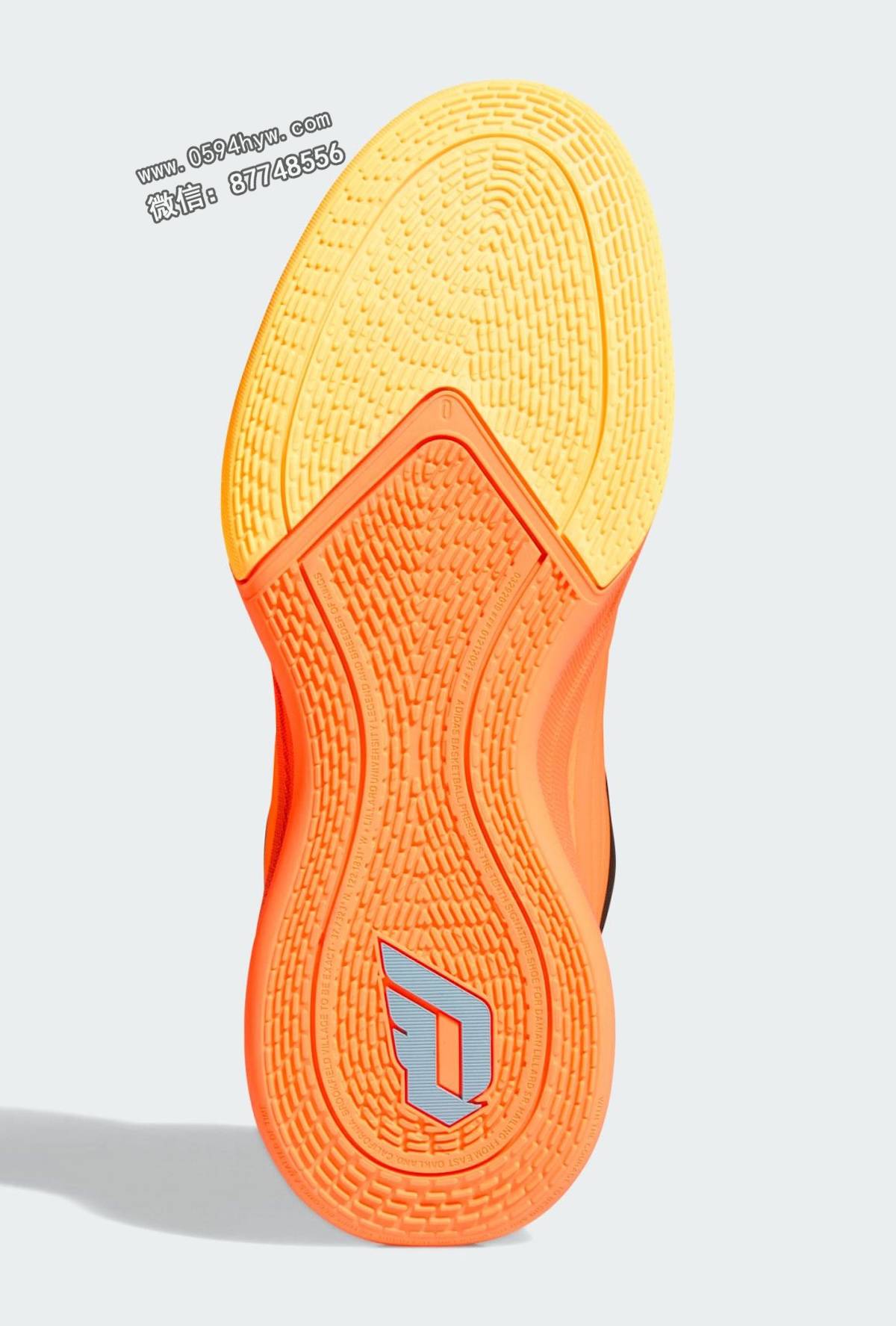 该鞋的性能特点包括阿迪达斯的 Lightstrike 缓震技术和底部装载的 Y 形柄板。外底为橙黄色牵引图案,前脚掌处印有 Dame 自己的 “D “标志。