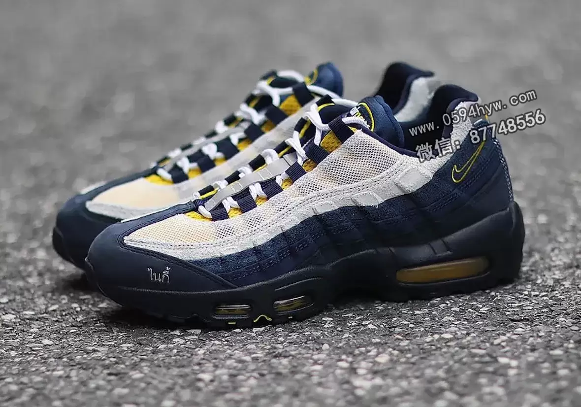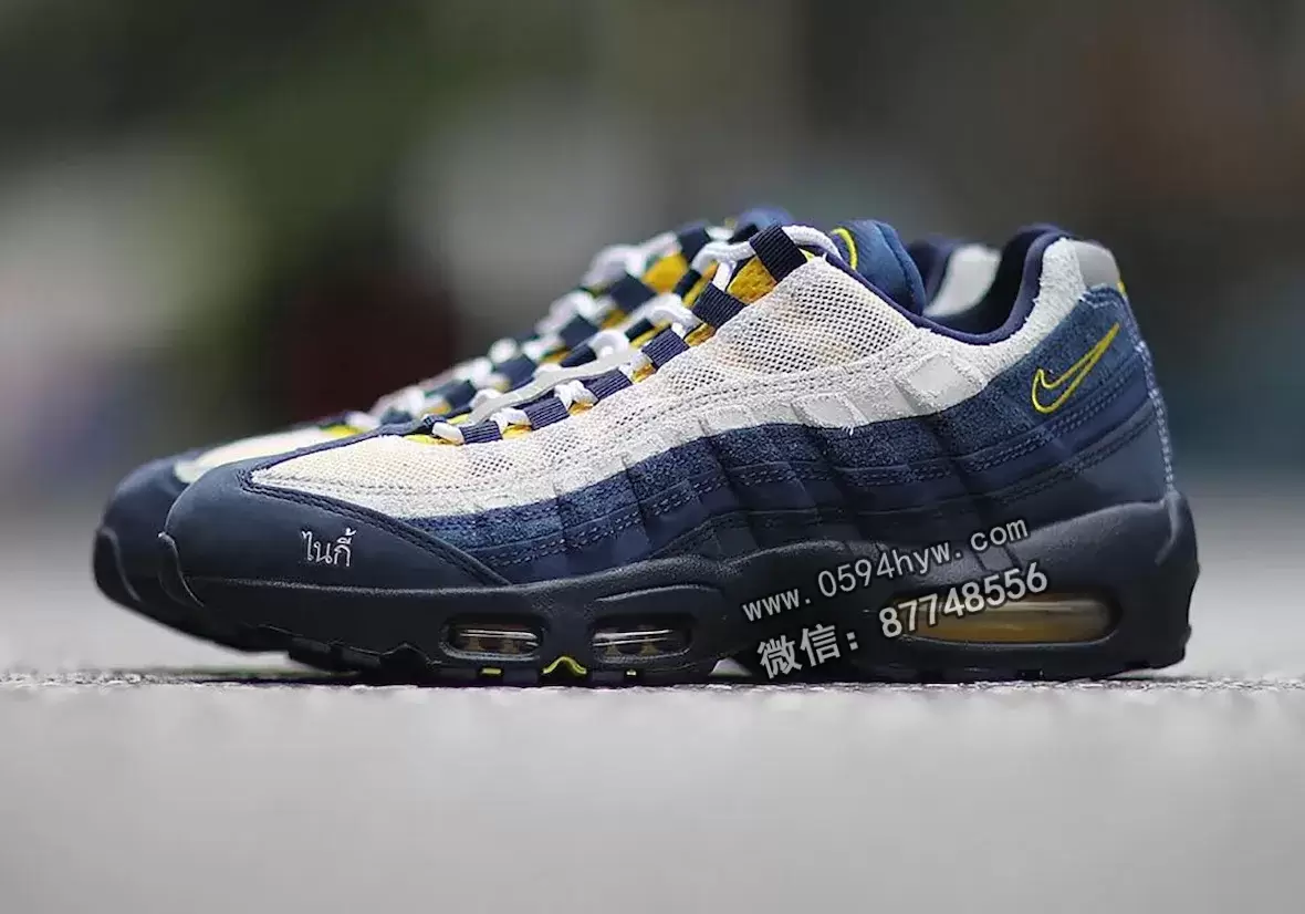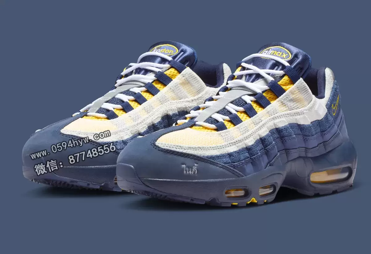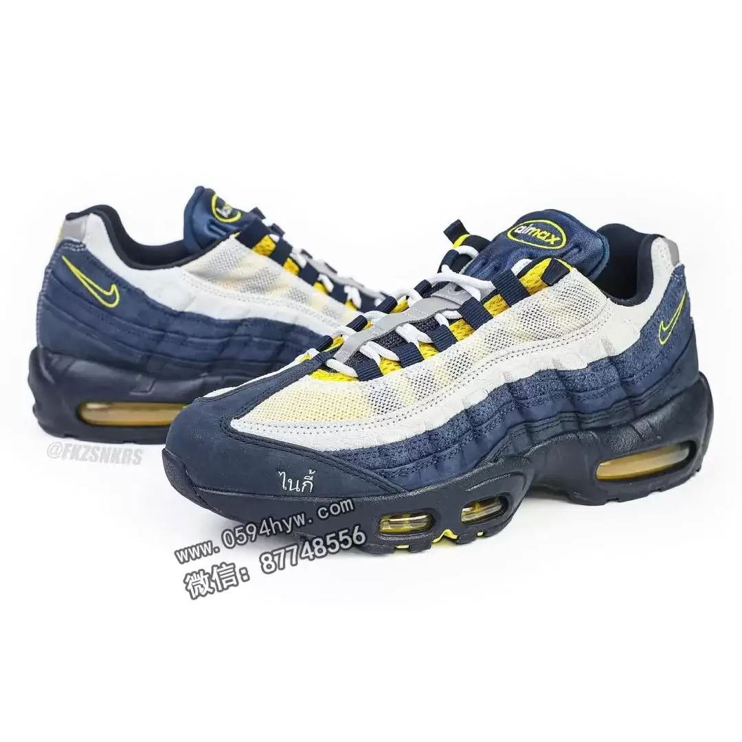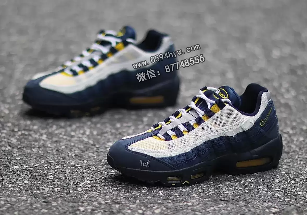 更新 10/21/25:下面是 Eric Koston SB Air Max 95 的官方照片,鞋头有泰文字母,鞋舌上有 Koston 的名字。海军蓝和黄色的设计与密歇根州的颜色相呼应,并配有复古霓虹色的 Air Max 鞋垫。预计将于 2025 年 11 月发售。敬请关注更多更新。