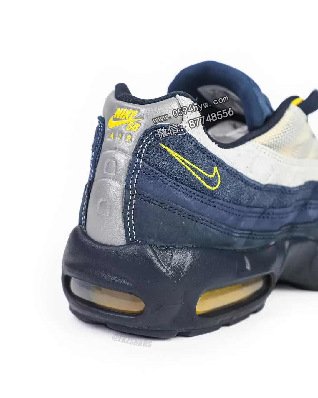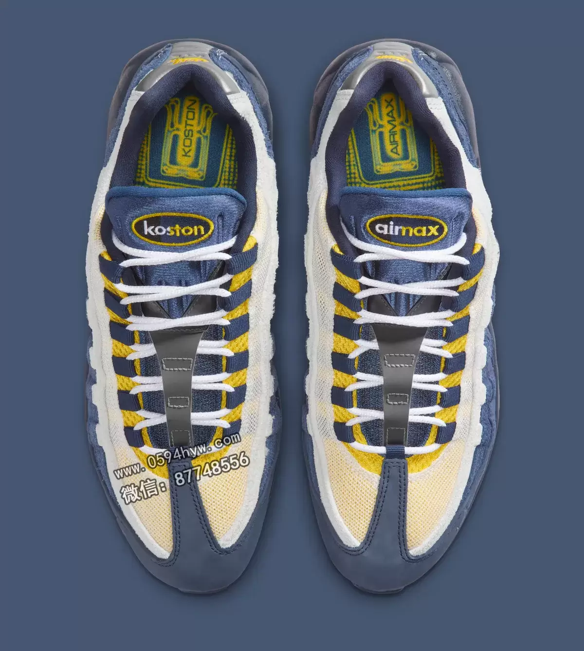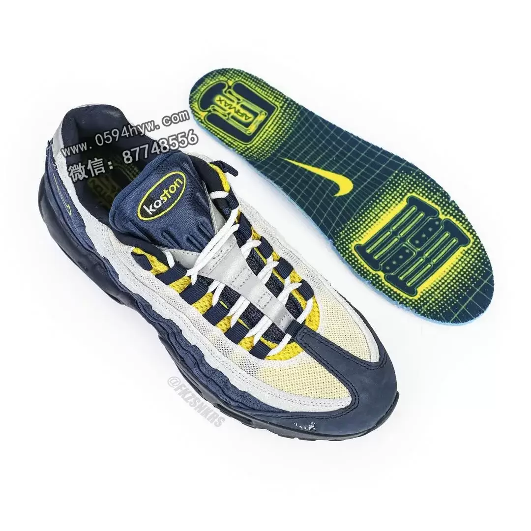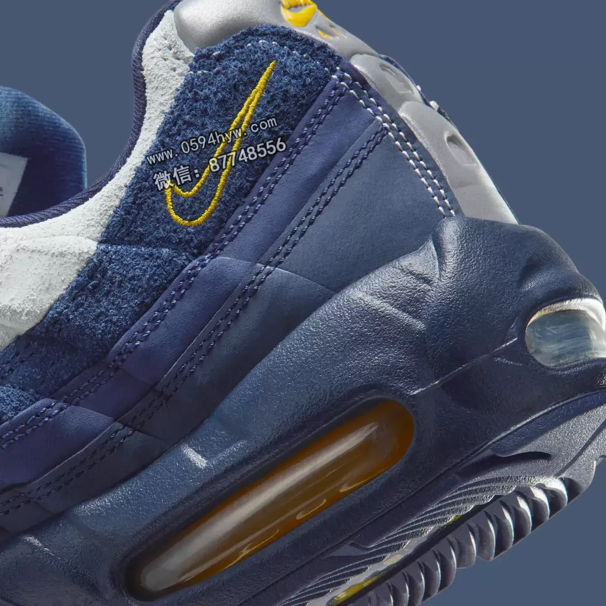 更新 10/21/25:下面是 Eric Koston SB Air Max 95 的官方照片,鞋头有泰文字母,鞋舌上有 Koston 的名字。海军蓝和黄色的设计与密歇根州的颜色相呼应,并配有复古霓虹色的 Air Max 鞋垫。预计将于 2025 年 11 月发售。敬请关注更多更新。