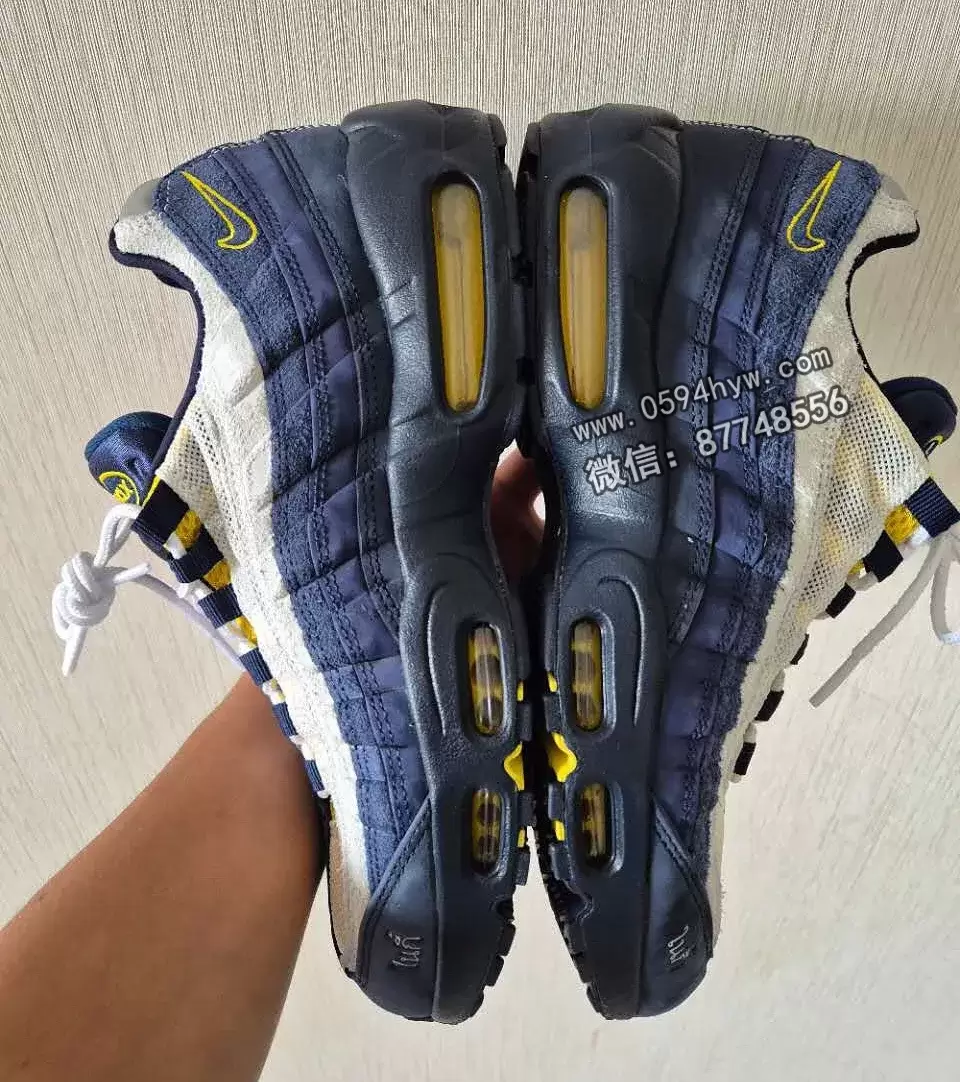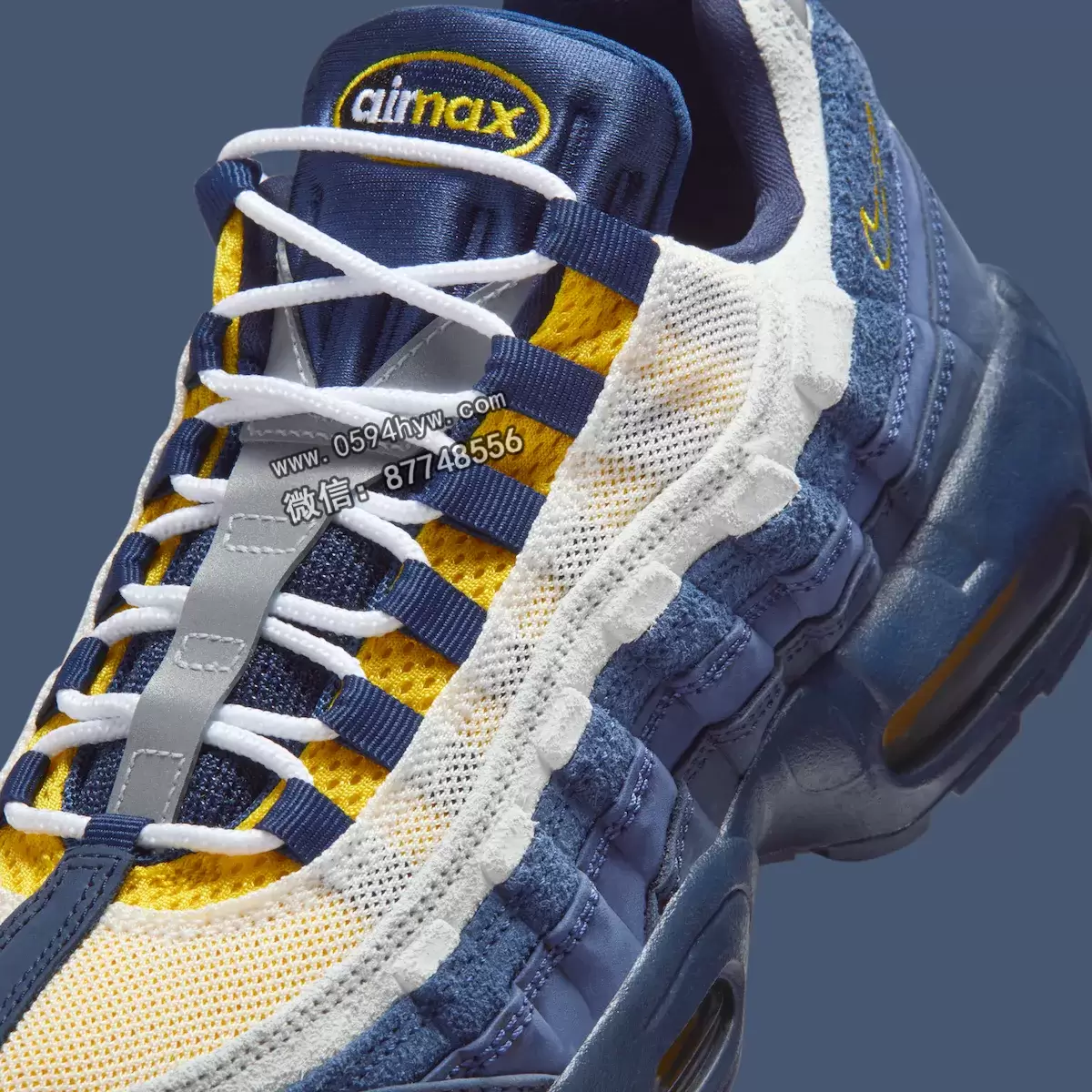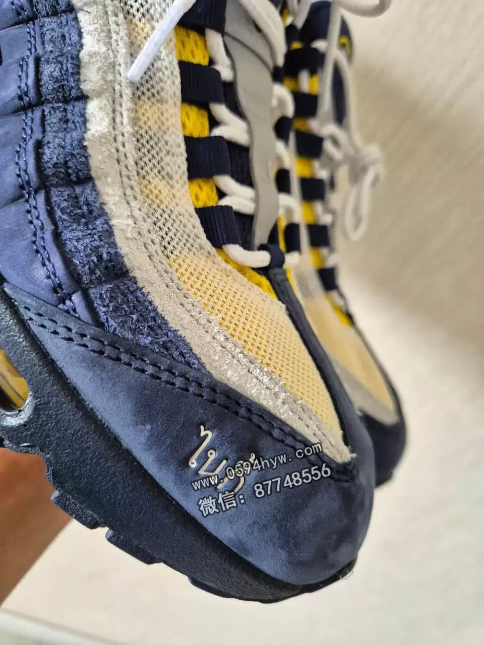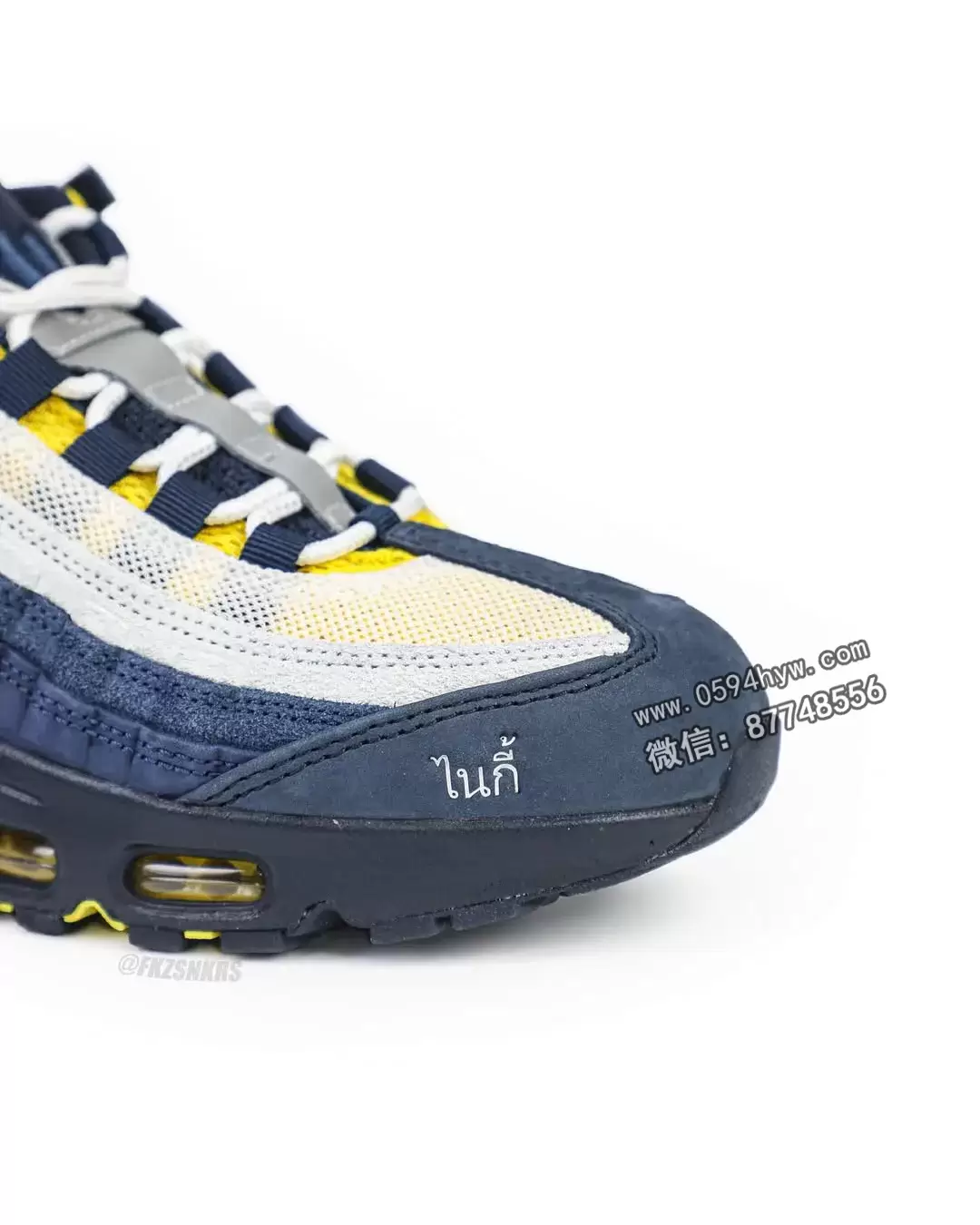 更新 10/21/25:下面是 Eric Koston SB Air Max 95 的官方照片,鞋头有泰文字母,鞋舌上有 Koston 的名字。海军蓝和黄色的设计与密歇根州的颜色相呼应,并配有复古霓虹色的 Air Max 鞋垫。预计将于 2025 年 11 月发售。敬请关注更多更新。
