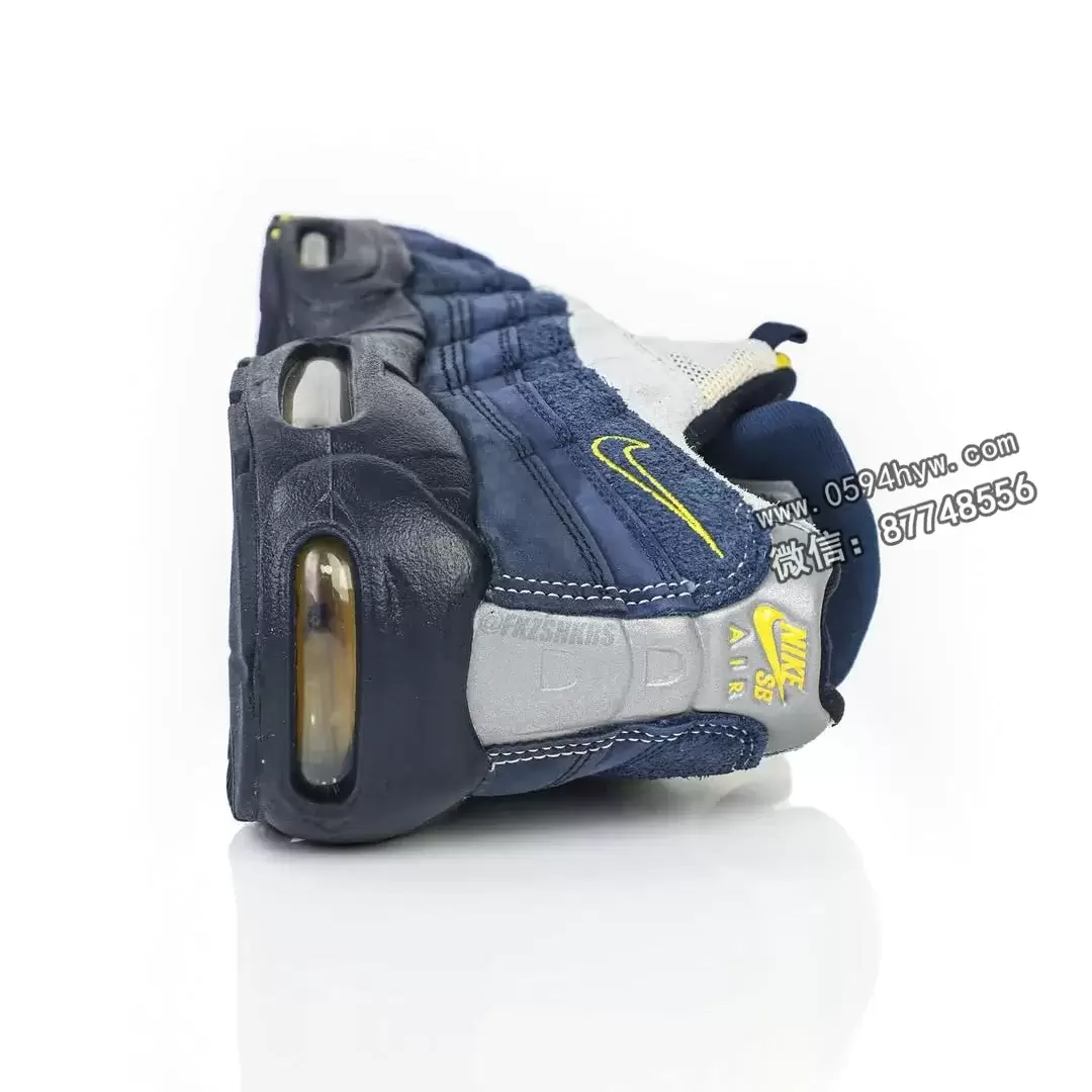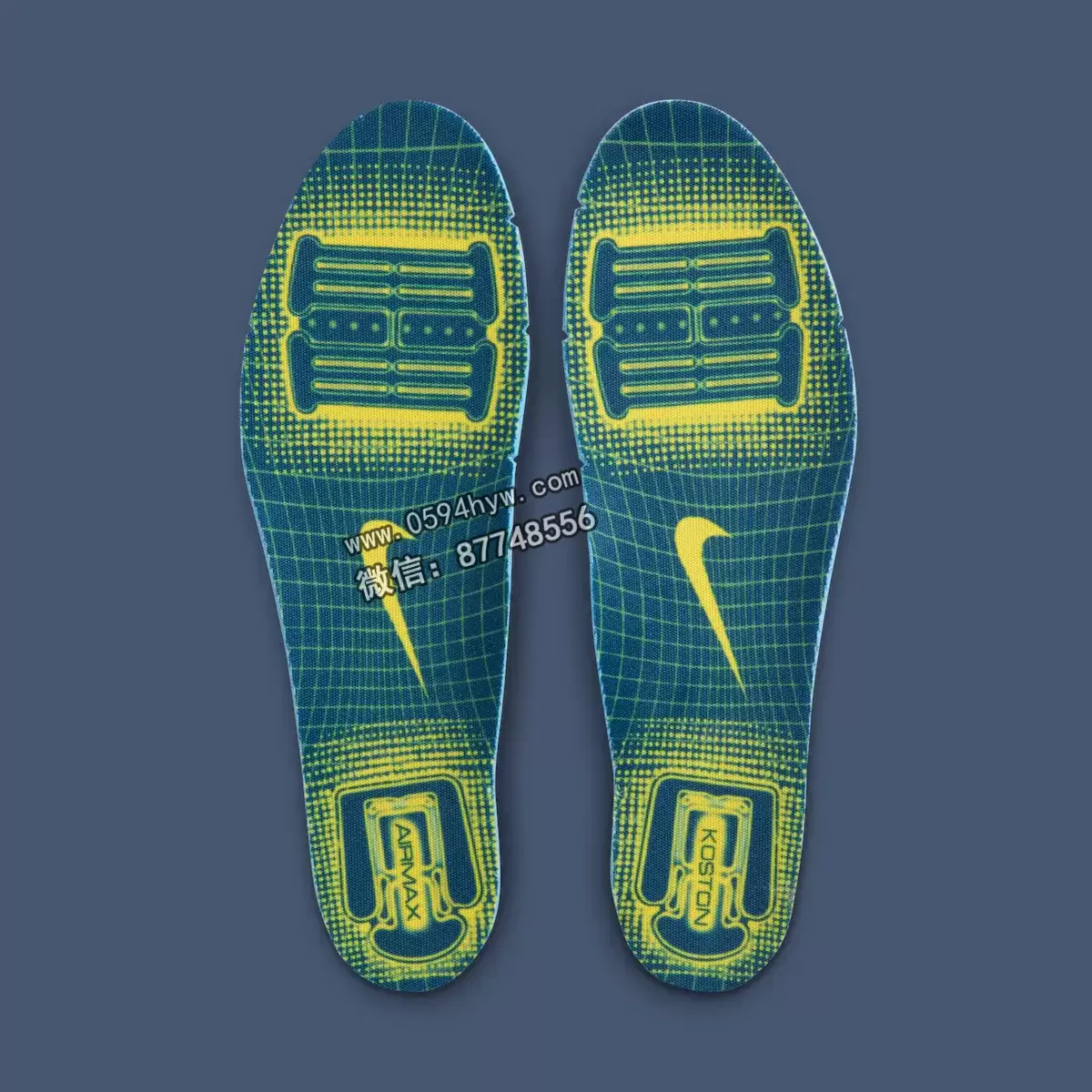 独特的元素包括鞋头的泰文刺绣,进一步强调了这款鞋的全球影响力和 Koston 的传统。鞋垫上的网格设计展示了从 Air Max 启发的工具图形,增加了视觉深度。