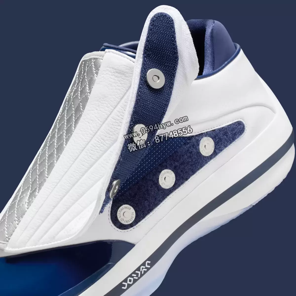 银色绗缝鞋舌面板和磁性护罩开合等小装饰进一步彰显了 Jordan Brand 对上乘材料和精良结构的追求。总之,这款鞋给人一种 “2000 年代初与未来相遇 “的感觉。