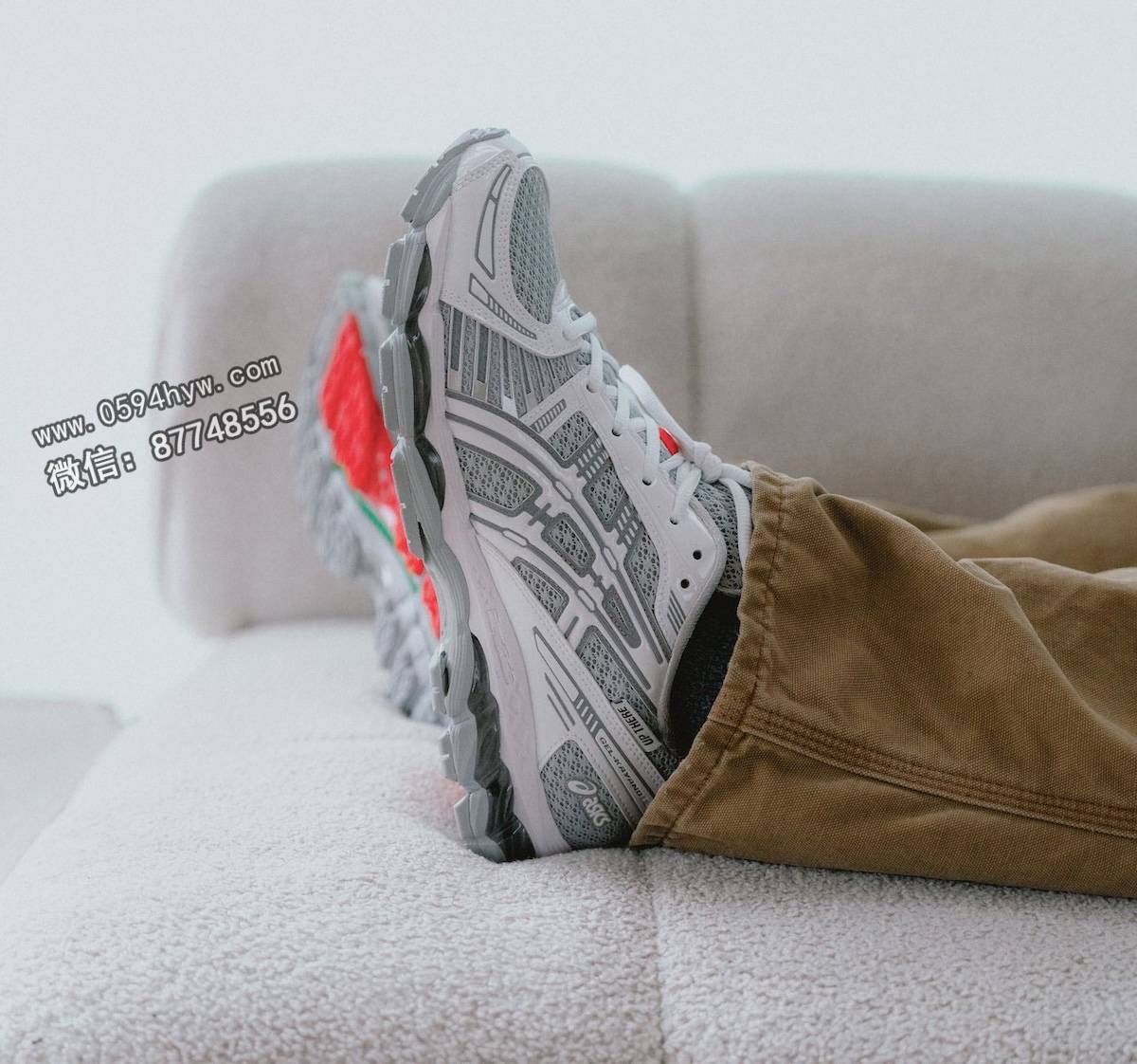 网眼装饰的灵感来自 GEL-KAYANO 20,并向帮助建立澳大利亚运动鞋形象的跑步文化致以微妙的敬意。绿色的 Up There 徽标闪耀在引导线上,而脚下的信号红则带来了额外的对比效果。