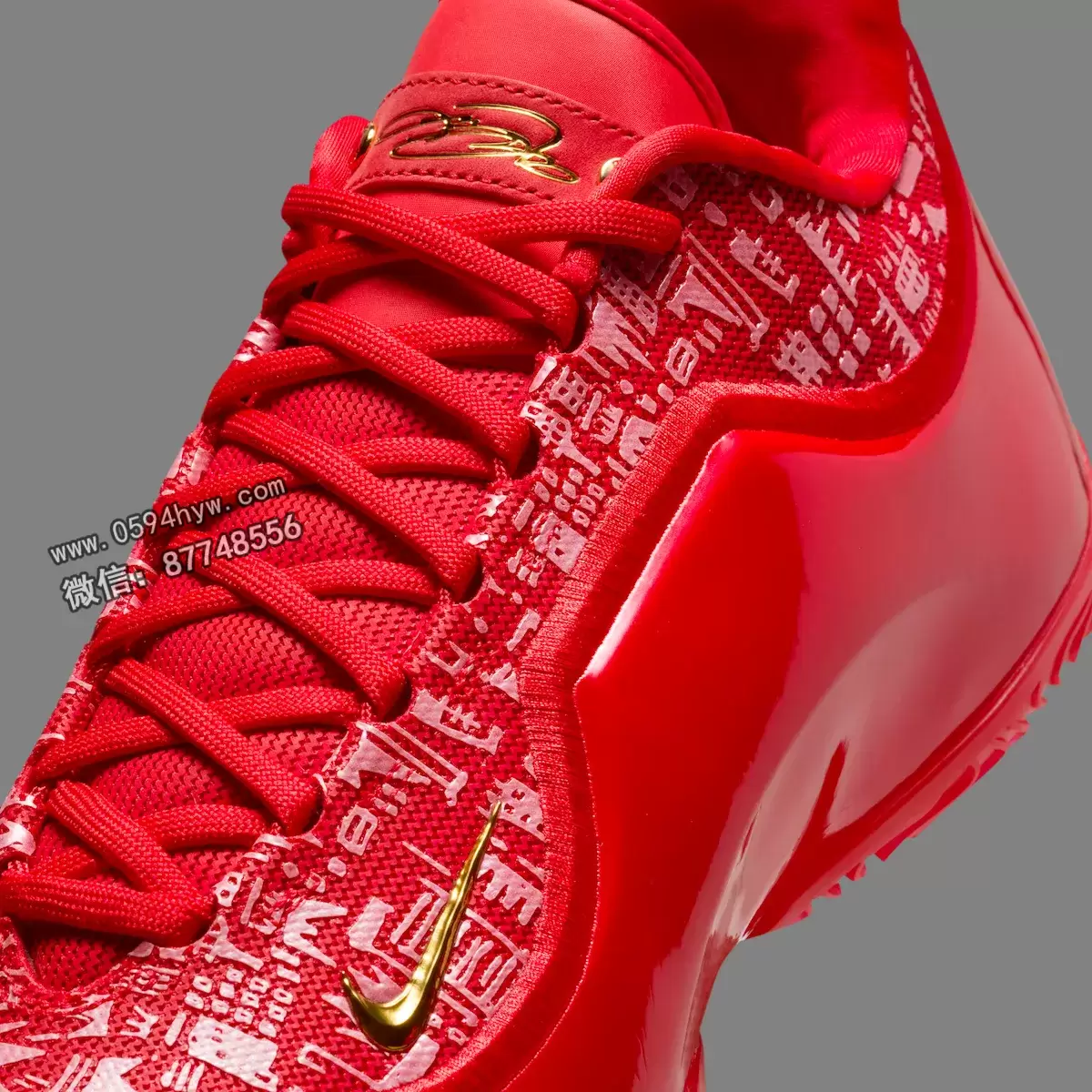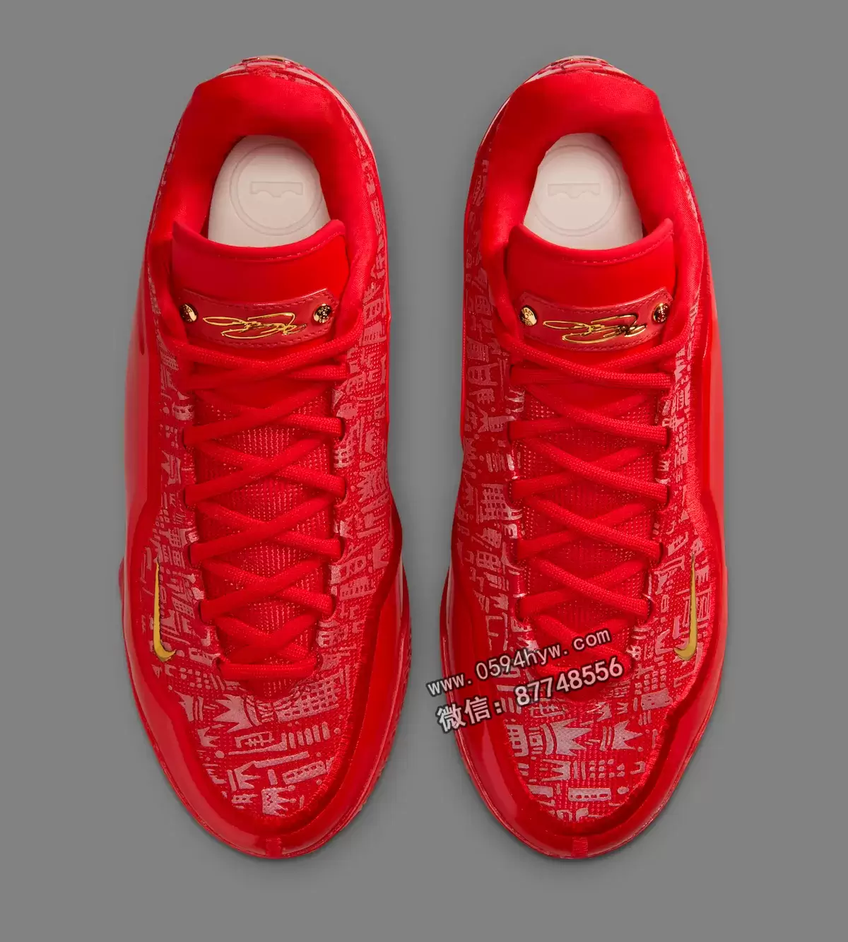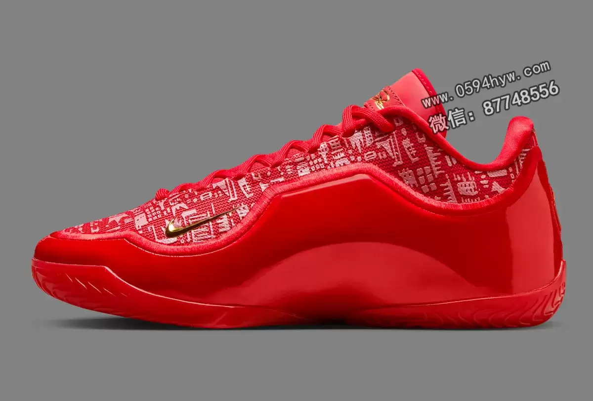 这双鞋的配色就很能说明问题。这双球鞋完全采用大学红配色,其复杂的反光图案灵感来自勒布朗职业生涯的里程碑。手绘的王冠设计是对他 “詹皇 “绰号的致敬,而鞋跟上咬了一口的苹果标志则是指纽约,也就是詹姆斯被选中并改变其职业生涯轨迹的 “大苹果”。Swoosh 上的金色装饰和勒布朗在鞋舌上的签名增添了王者的奢华气息。