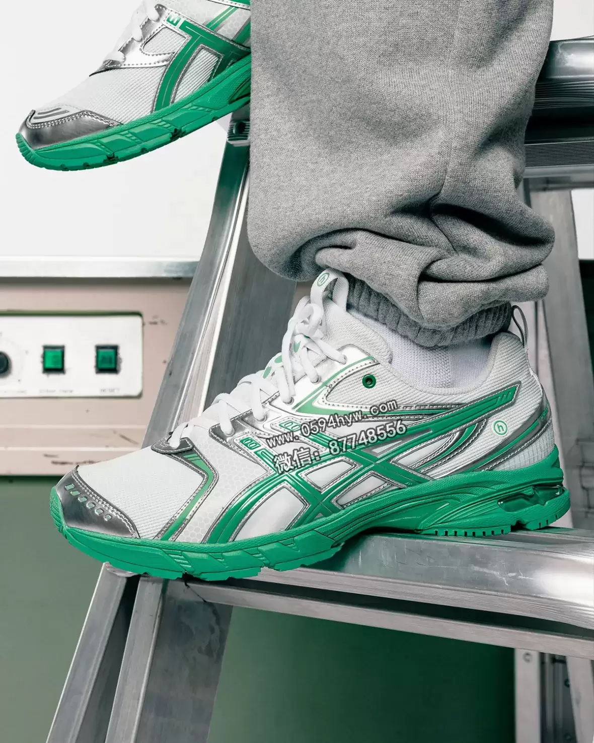 继 GEL-NYC 和 GEL-Venture 6 等大获成功的鞋款之后,HIDDEN 又推出了一款忠于其极简风格的鞋款。鞋面由白色网眼布和银色包边构成,与一抹绿色相得益彰,中底和后跟的金属装饰则为运动鞋增添了时尚和未来主义的气息。此外,该鞋款还融入了一些性能基因,采用了 ASICS 古董跑鞋的轮廓,非常贴合脚型。