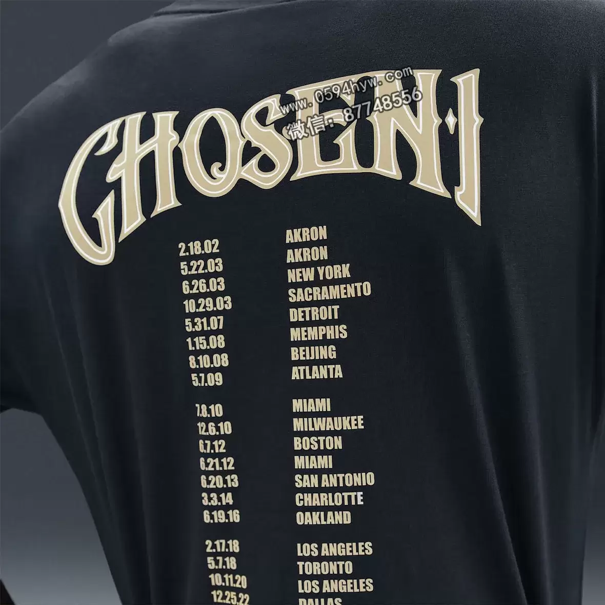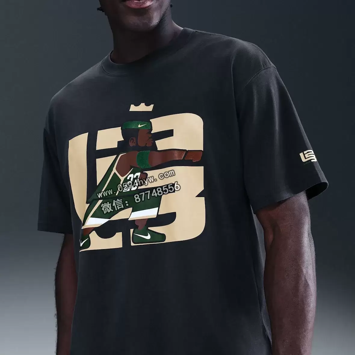 耐克还推出了一款图形 T 恤,上面印有勒布朗的 “L23 “标志,背板上则列出了勒布朗整个职业生涯所取得的成就,从阿克伦到迈阿密,以及中间的任何地方。