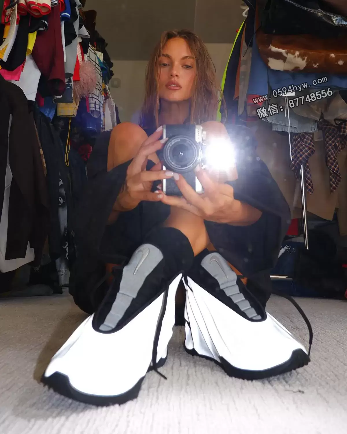 从日光下看,这双鞋是相当哑光和简约的。但将相机的闪光灯对准它,就会发现整双鞋从鞋跟到鞋头都变成了深邃的银色。鞋身结构的流畅垂坠感赋予其近乎雕塑般的质感,这在高性能鞋款中是始料未及的。鞋底、鞋舌和鞋垫均为黑色,穿孔设计保持了微妙的透气性。