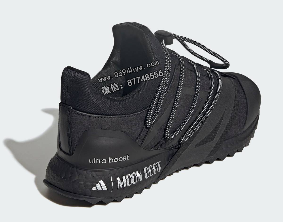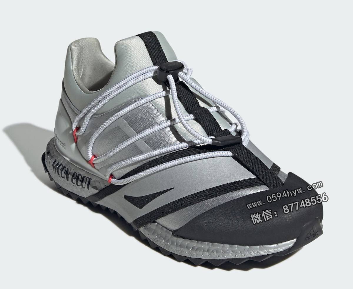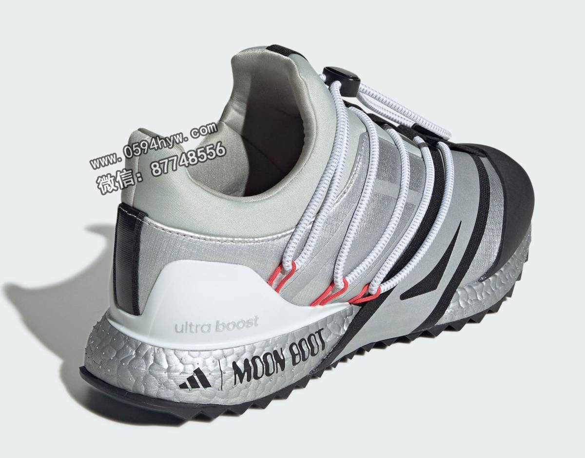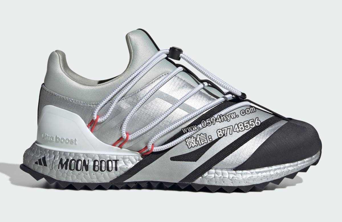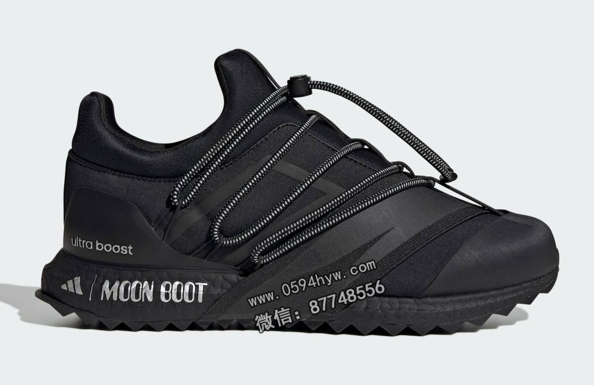 该系列包括两款经典的Moon Boot系列,分别为核心黑(Core Black)和哑光银(Matte Silver)。两款鞋均采用了联名品牌设计和该品牌标志性的缠绕线缆系统。此外,两款Ultra Boost 1.0鞋款也将采用 Moon Boot 设计。