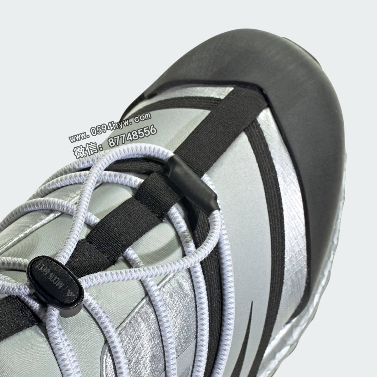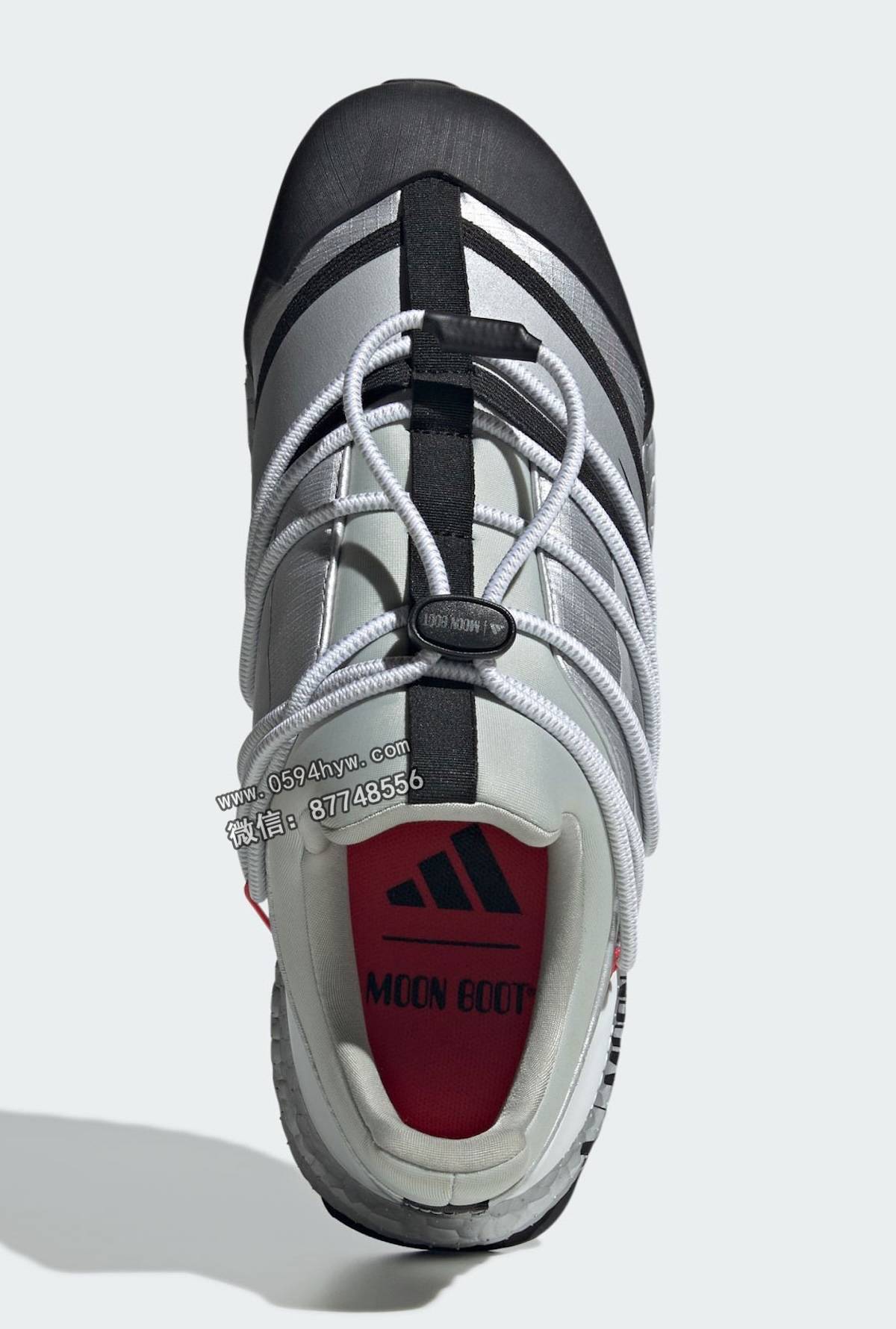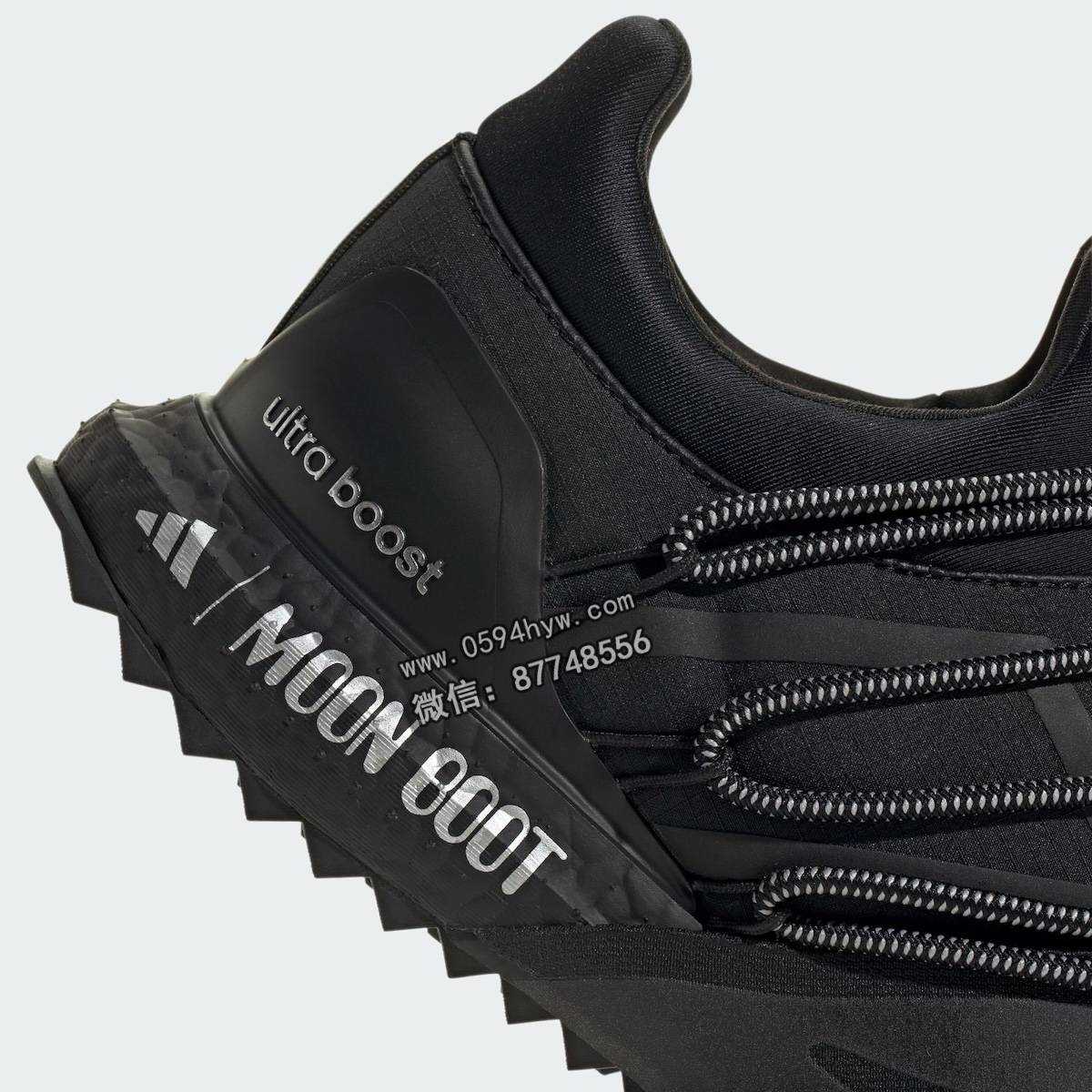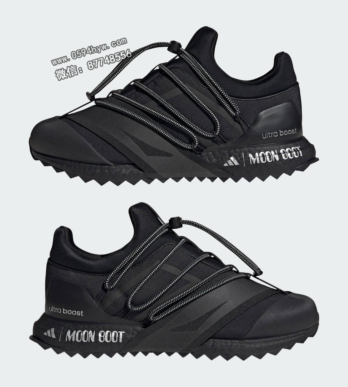 该系列包括两款经典的Moon Boot系列,分别为核心黑(Core Black)和哑光银(Matte Silver)。两款鞋均采用了联名品牌设计和该品牌标志性的缠绕线缆系统。此外,两款Ultra Boost 1.0鞋款也将采用 Moon Boot 设计。
