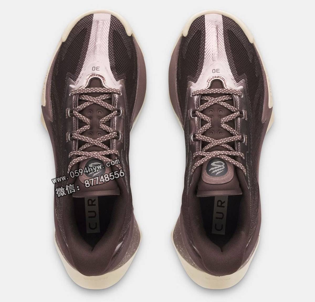 其淡紫色棕色网眼鞋面搭配金属玫瑰点缀,营造出清新、快速的外观。轻盈透气的触感与凿纹美学相结合,形成了比以往库里系列更流线型的未来主义风格。
