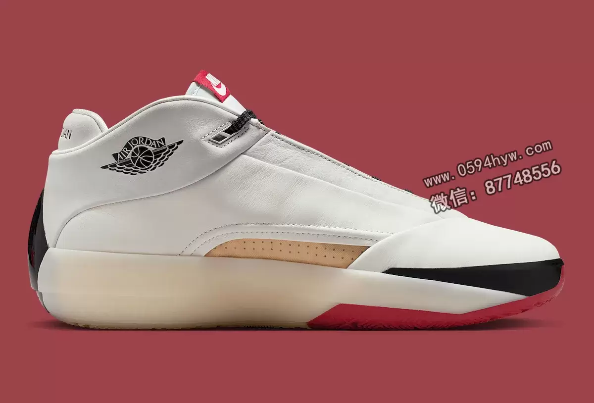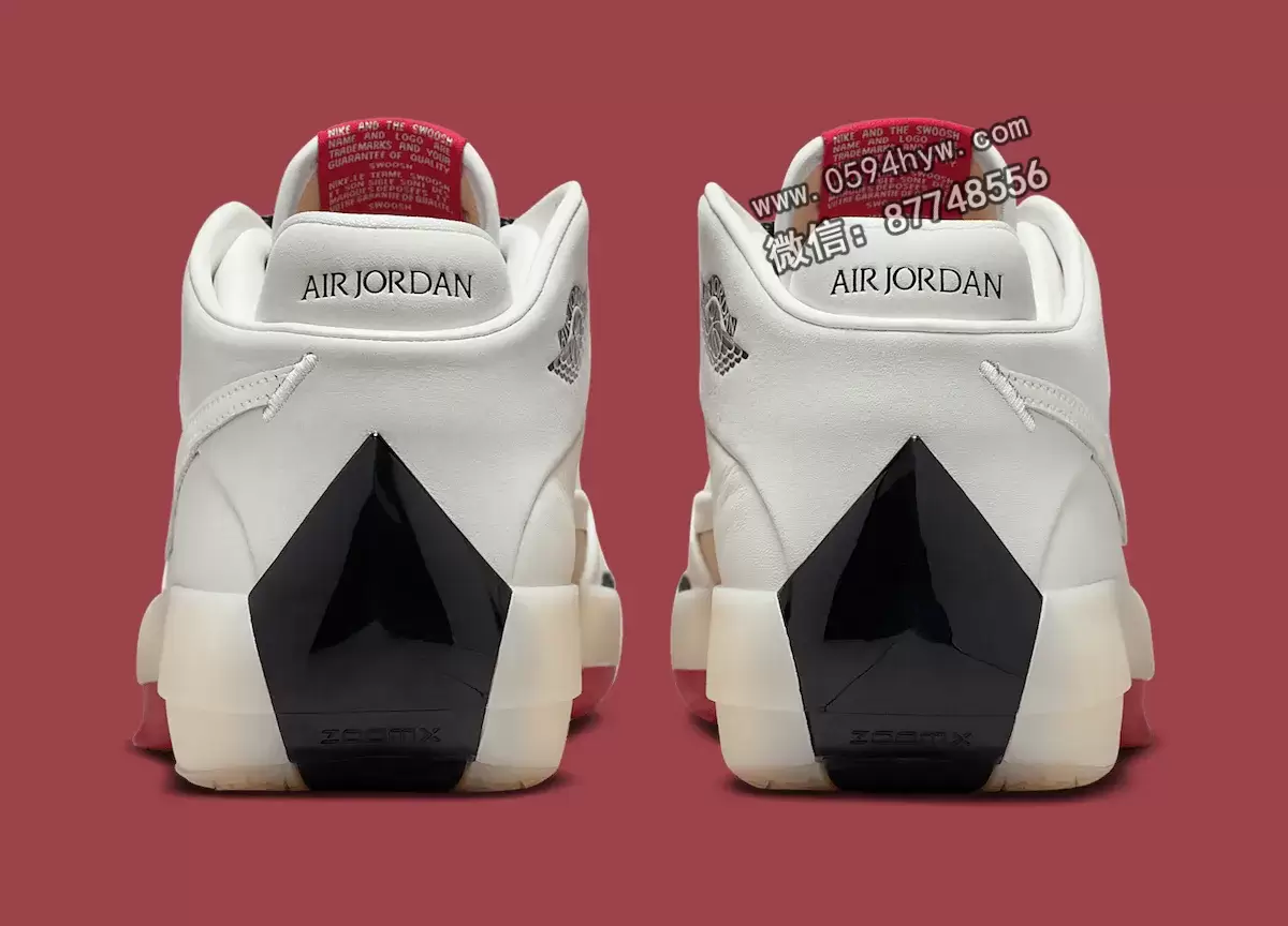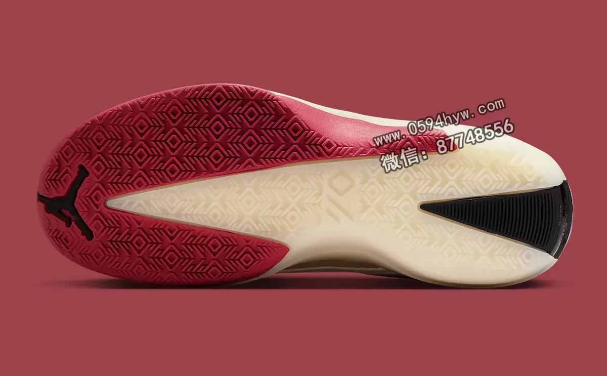 在鞋底,乔丹品牌引入了 ZoomX 缓震技术–轻盈、灵敏,专为高性能而打造。外底由奶油色和红色区域与锋利的黑色后跟片组合而成。这款鞋技术含量高,但同时又充满未来感,与以往的乔丹鞋款感觉不同。