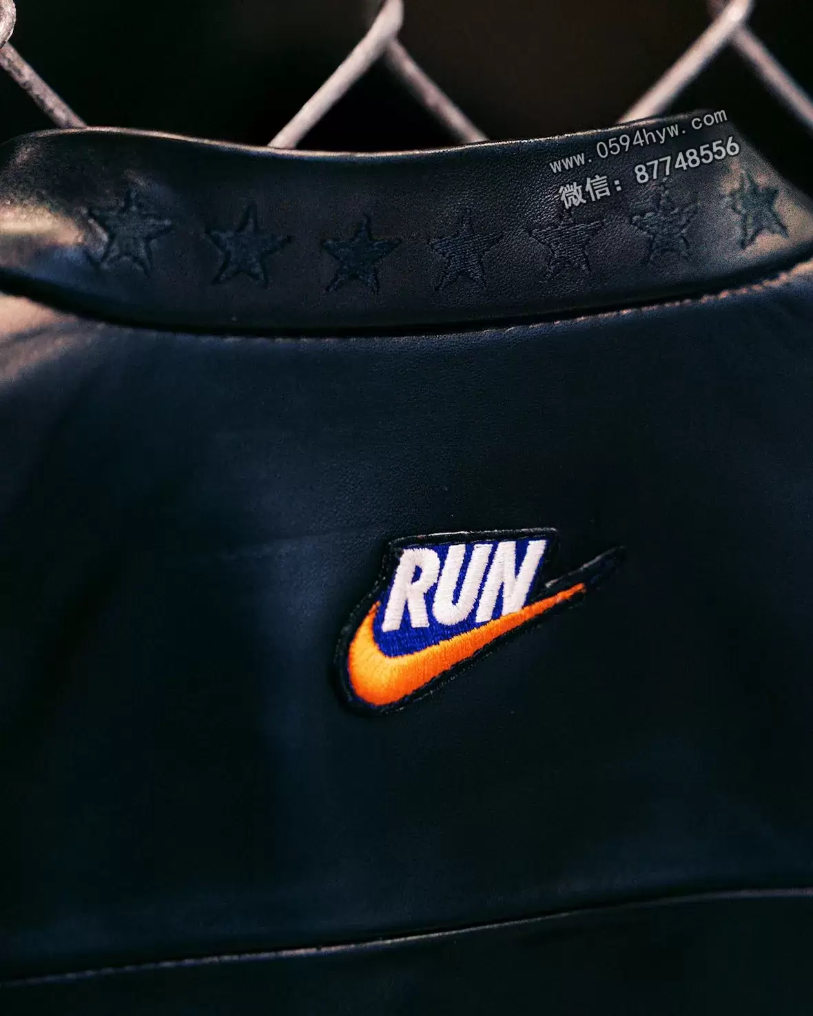 为了向纽约街头的艰苦奋斗精神致敬,耐克与纽约公立学校(Public School NYC)和 An Only Child 合作,为基普乔格和哈桑定制了黑色皮夹克。基普乔格的皮夹克内侧有一个定制贴片,上面印有他的马拉松世界纪录时间 1:59:40。哈桑的夹克背后绣有荷兰和埃塞俄比亚国旗,这是对她双文化根源的动人颂歌。