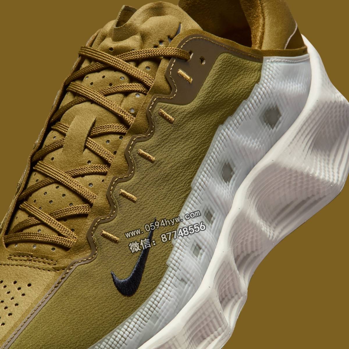 这款鞋以沙漠苔藓网布为底,帆布挡泥板,然后是富有表现力的厚实、雕刻的 ReactX 中底,带来前瞻性的舒适感。迷你黑色 Swooshes 的使用提供了一个很好的图形对比,而华夫饼图案的外底则向耐克的复古越野设计致敬,其色调无疑为凉爽天气的搭配做好了准备。
