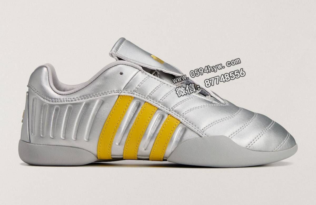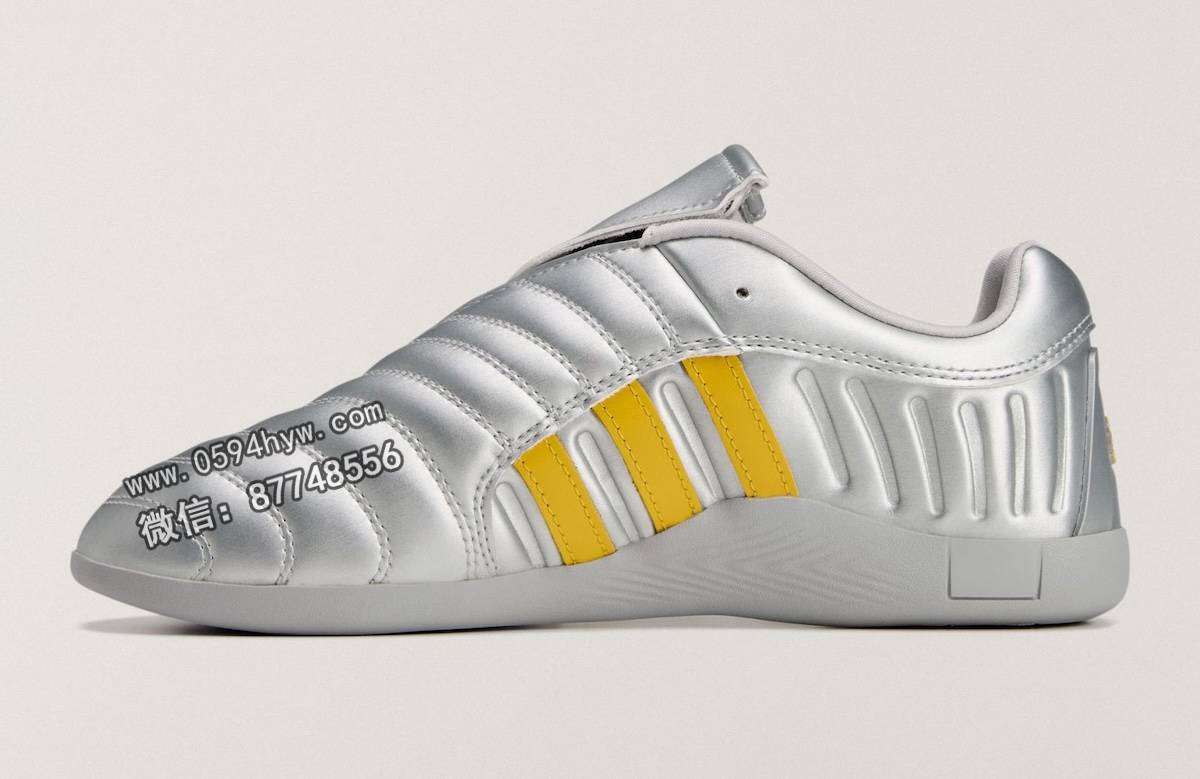 接下来是Mei Elite。想象一下芭蕾舞核心元素与复古足球文化的碰撞。银色的绗缝鞋面和隐蔽的鞋带盖,给人一种老式足球鞋披上未来主义华丽外衣的感觉。黄色的三条纹略显前卫,感觉恰到好处,为这双鞋增添了一种粗狂的张扬感。