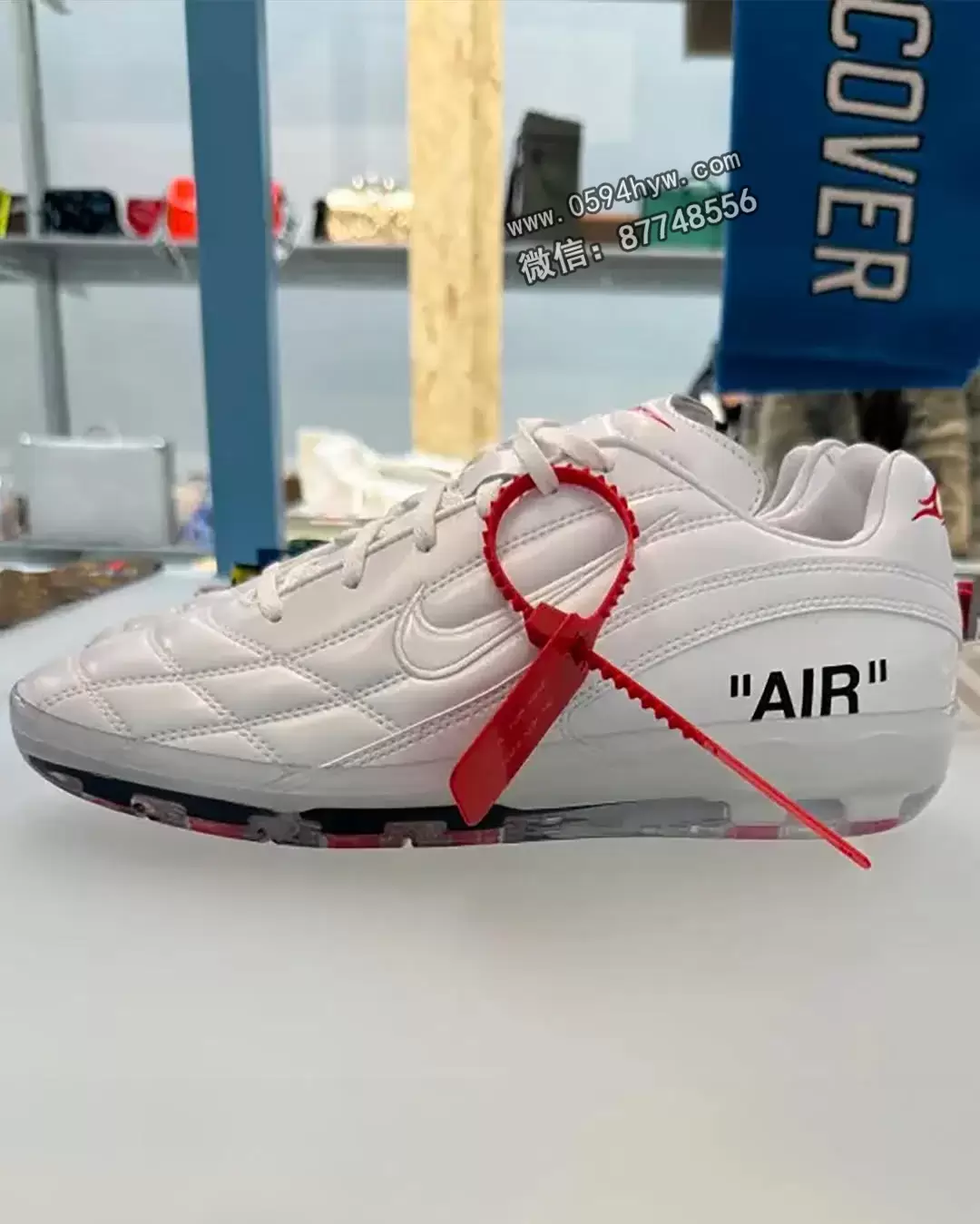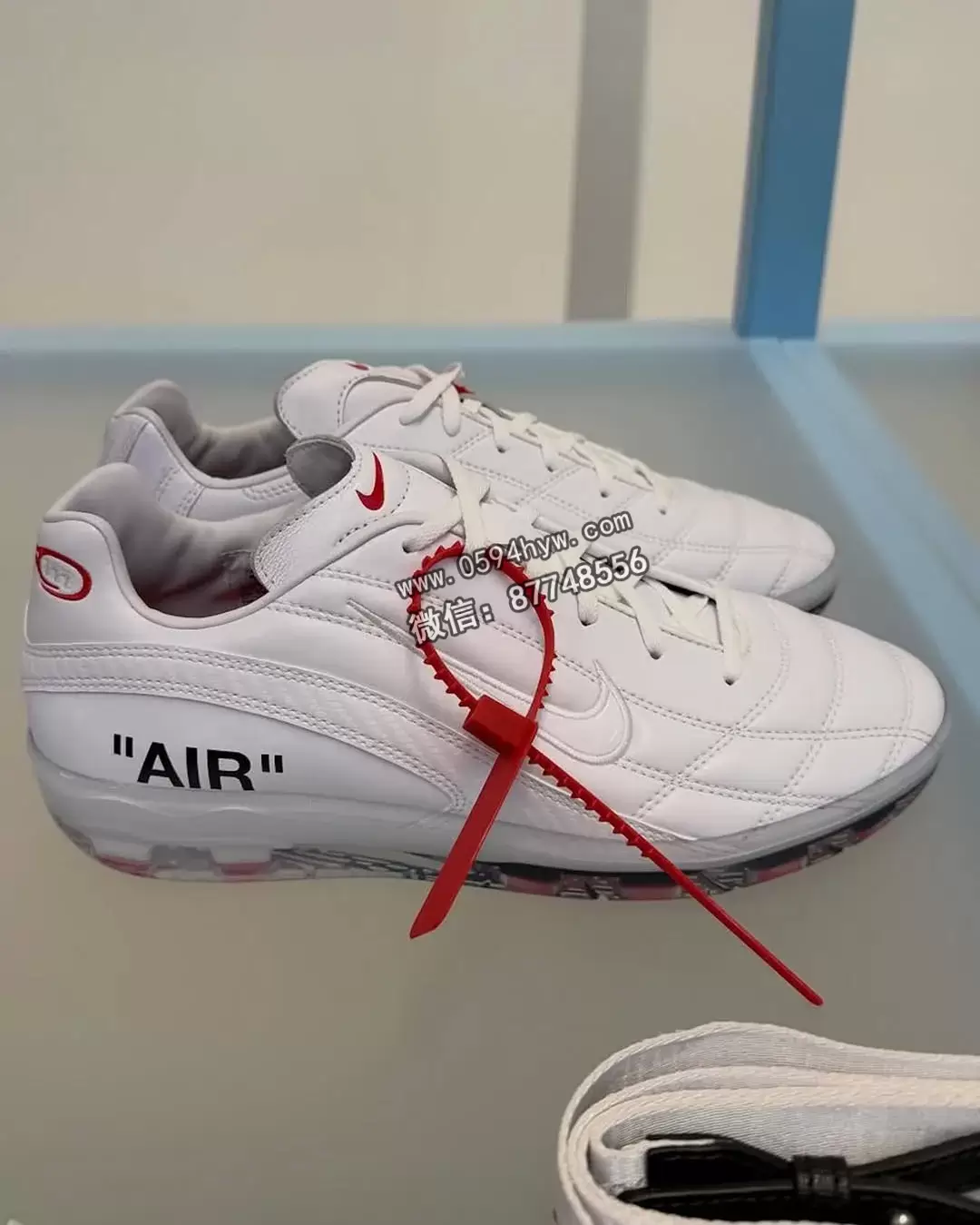 Cryoshot 鞋款融合了高性能足球基因和 Off-White 的鲜明视觉特征。这双鞋以白色皮革为基底,点缀以火红色细节、迷你 Swooshes 刺绣,当然还有标志性的红色拉链。鞋底的突出元素是半透明的 Cryoshot 鞋底笼,赋予鞋款近似球鞋的框架,但又不会让人感觉过于技术化。