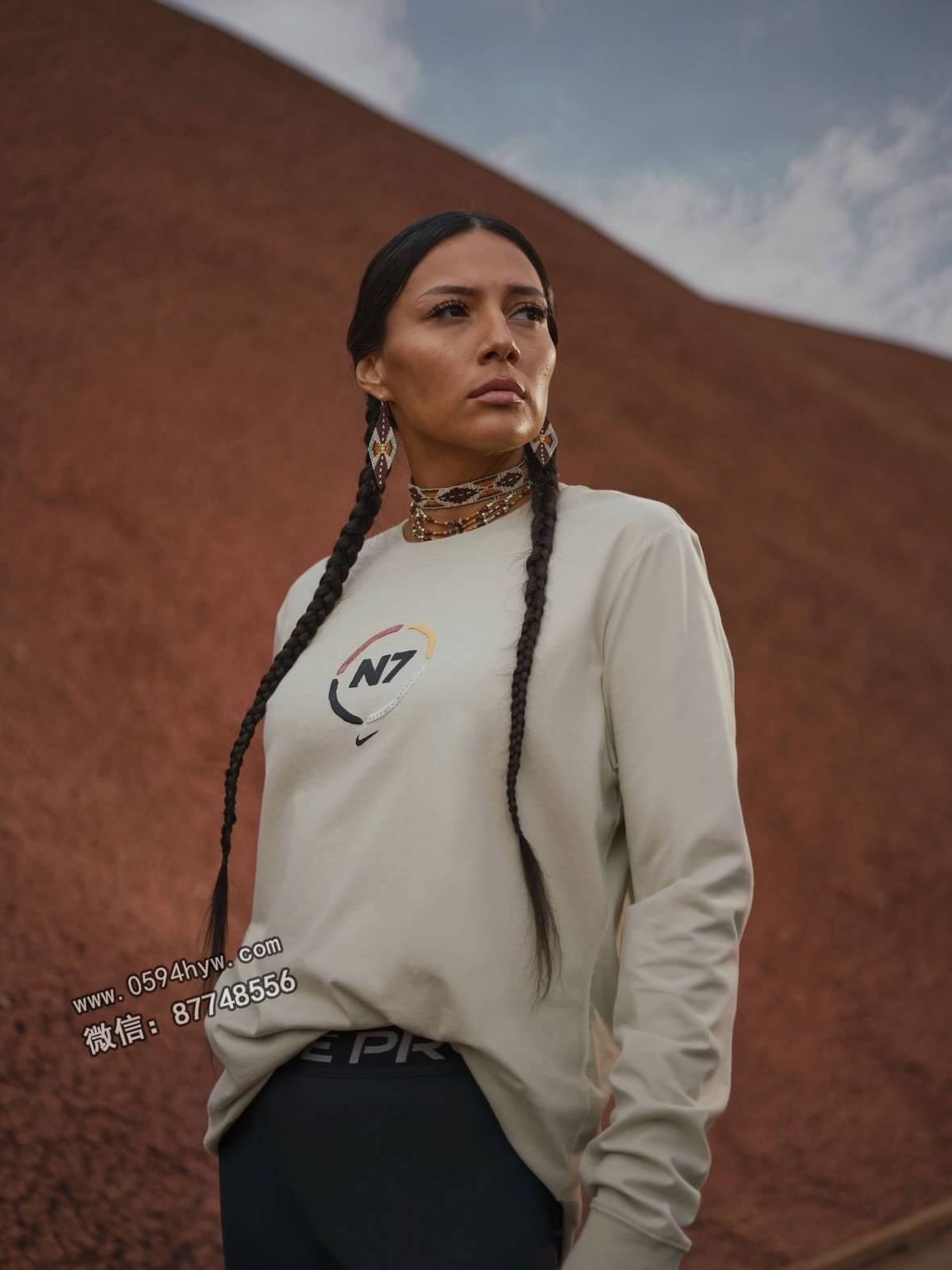 女演员 Amber Midthunder 与跑步运动员 Kutoven Stevens 和 Lenise Omeasoo 一起负责广告宣传。Midthunder、Stevens 和 Omeasoo 为耐克 N7 系列增添了深度,使其不再是象征性的存在。