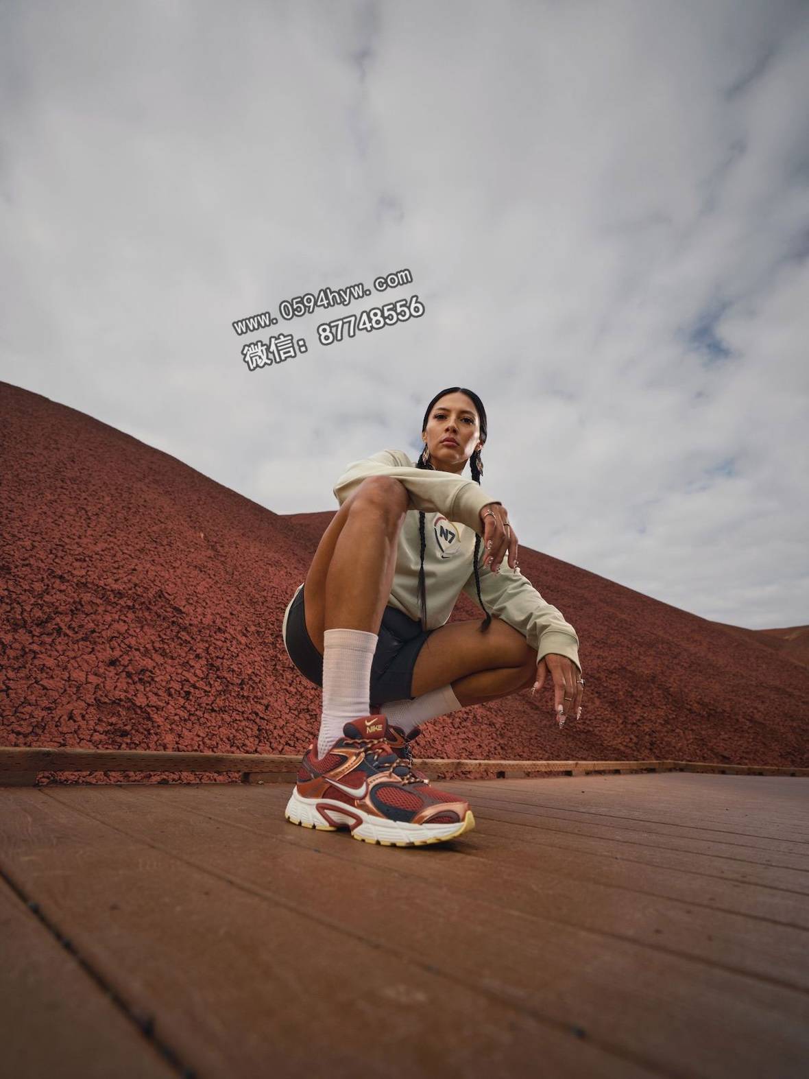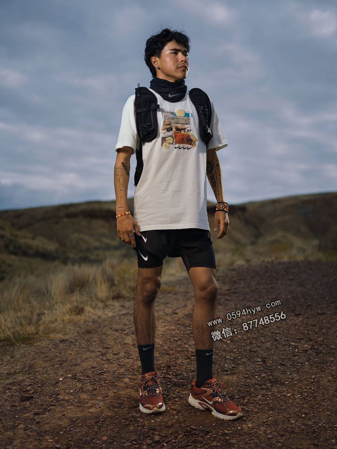 首先登场的是Nike Pegasus 41和V5 RNR,以及编织货运裤、Phoenix fleece crews 和休闲 T 恤。配色方案让人联想到鼠尾草色、沙色和无烟煤色,涵盖了部落家园的各种地貌。而图案则充满了真实感,少了一些企业色彩。