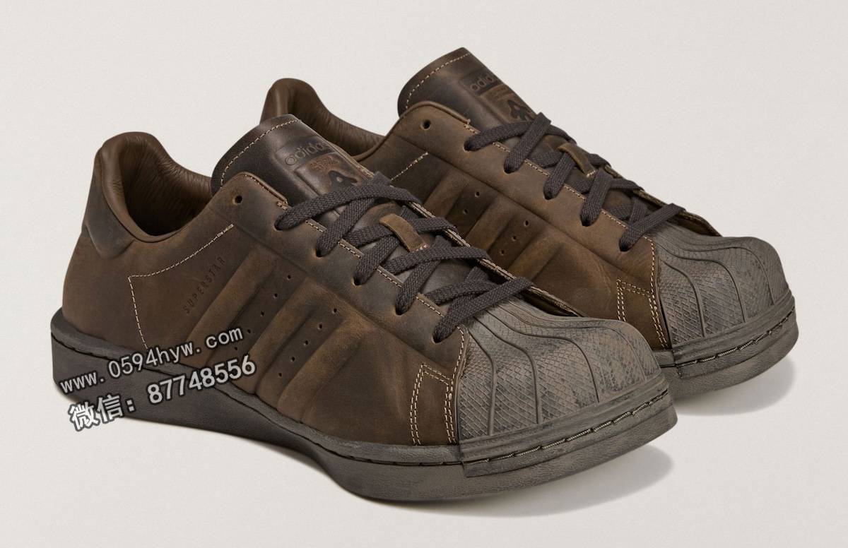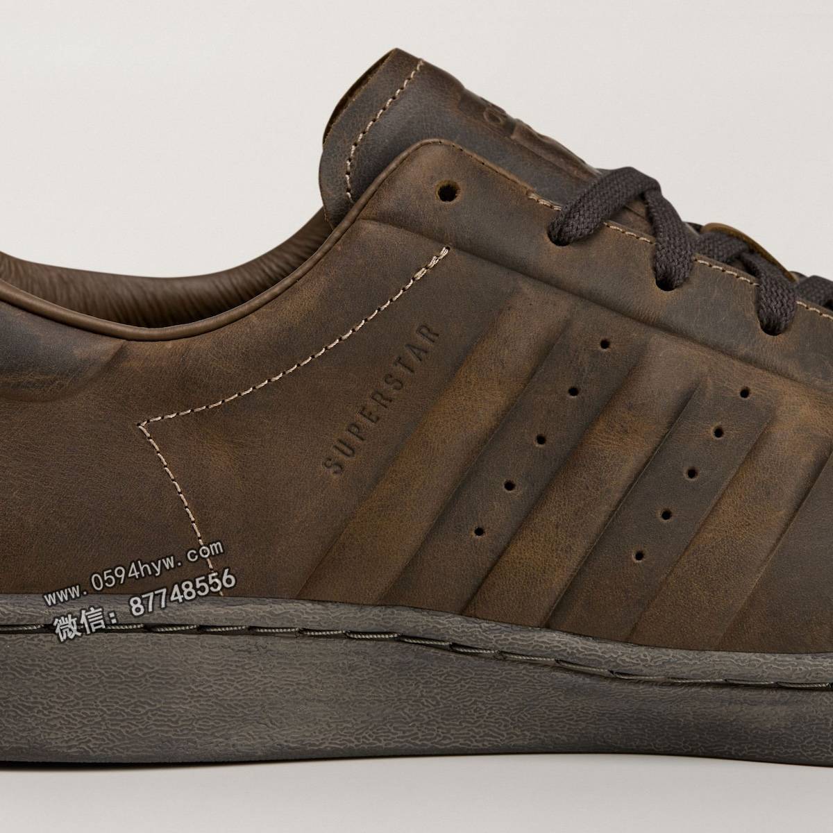 在 Superstar 鞋款上,经过雕刻和软化的皮革鞋面唤起了一种有目的的扭曲感,就像 OG 鞋款的扭曲影子,而龟裂破旧的贝壳鞋头则夸大了这种风格,也迎合了破坏美学。这双鞋有两种经受过 “油腻 “考验的黑色,而棕色配色的加入则在不偏离 Superstar 街头风格的基础上增添了古铜色和一丝华丽感。