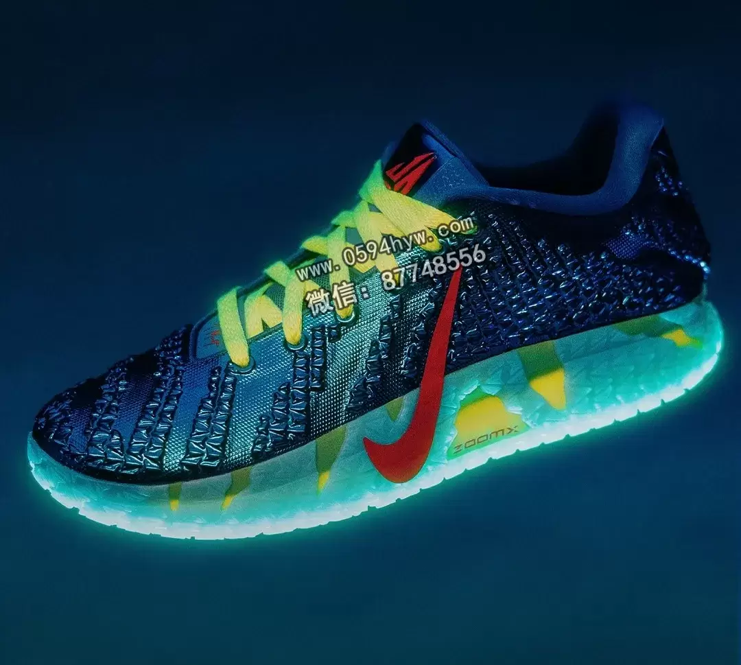 鞋面是海军蓝针织面料,配以霓虹黄鞋带和点缀,充满了家的温馨和俏皮。霓虹红色的 Swoosh 标志横跨鞋侧。在脚下,全长 ZoomX 缓震装置使 Ja 3 对于依赖爆发力和变速打法的后卫来说反应灵敏。半透明的外底光芒为这款鞋增添了一点 “运动中你会注意到它 “的亮点。