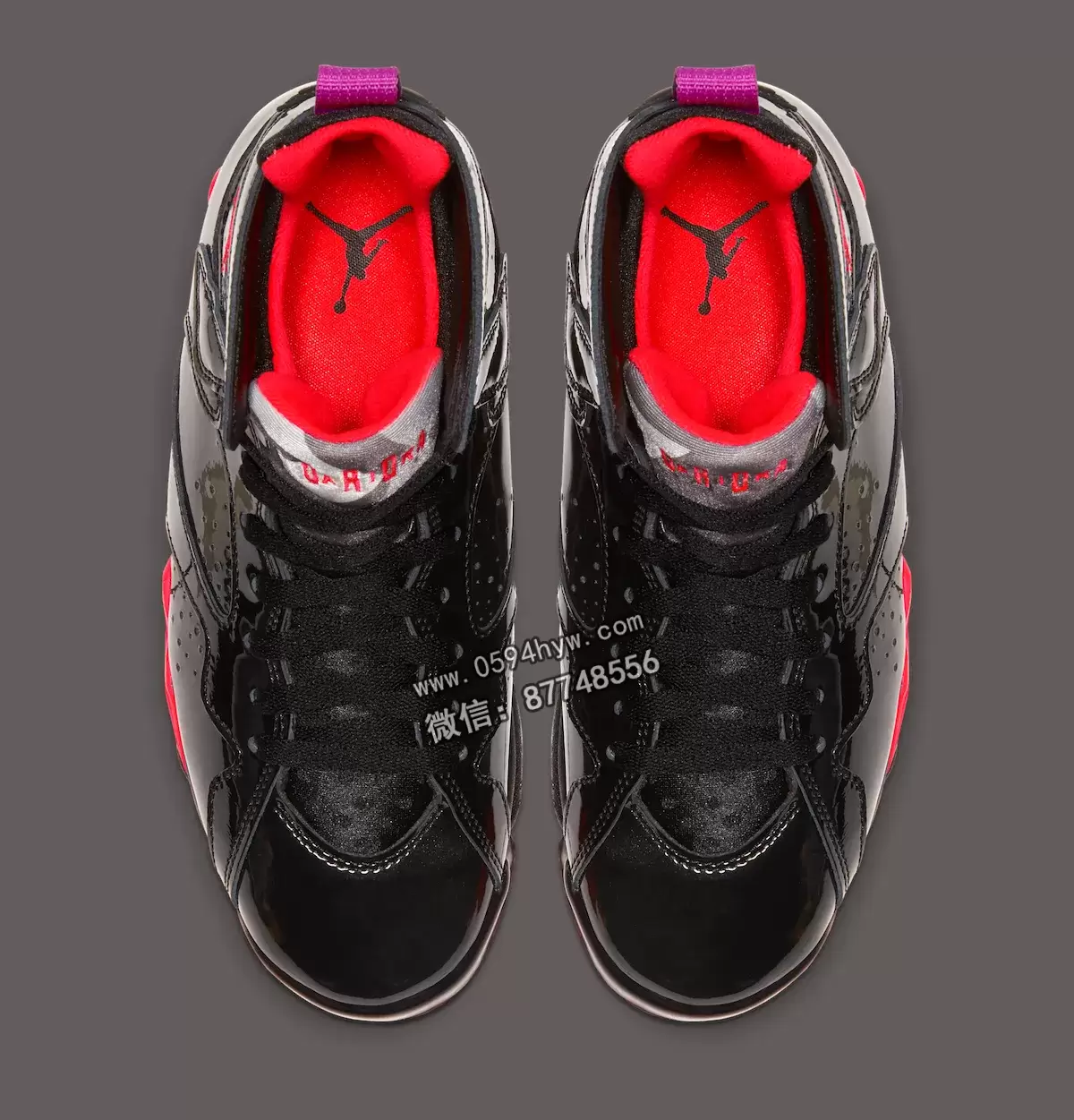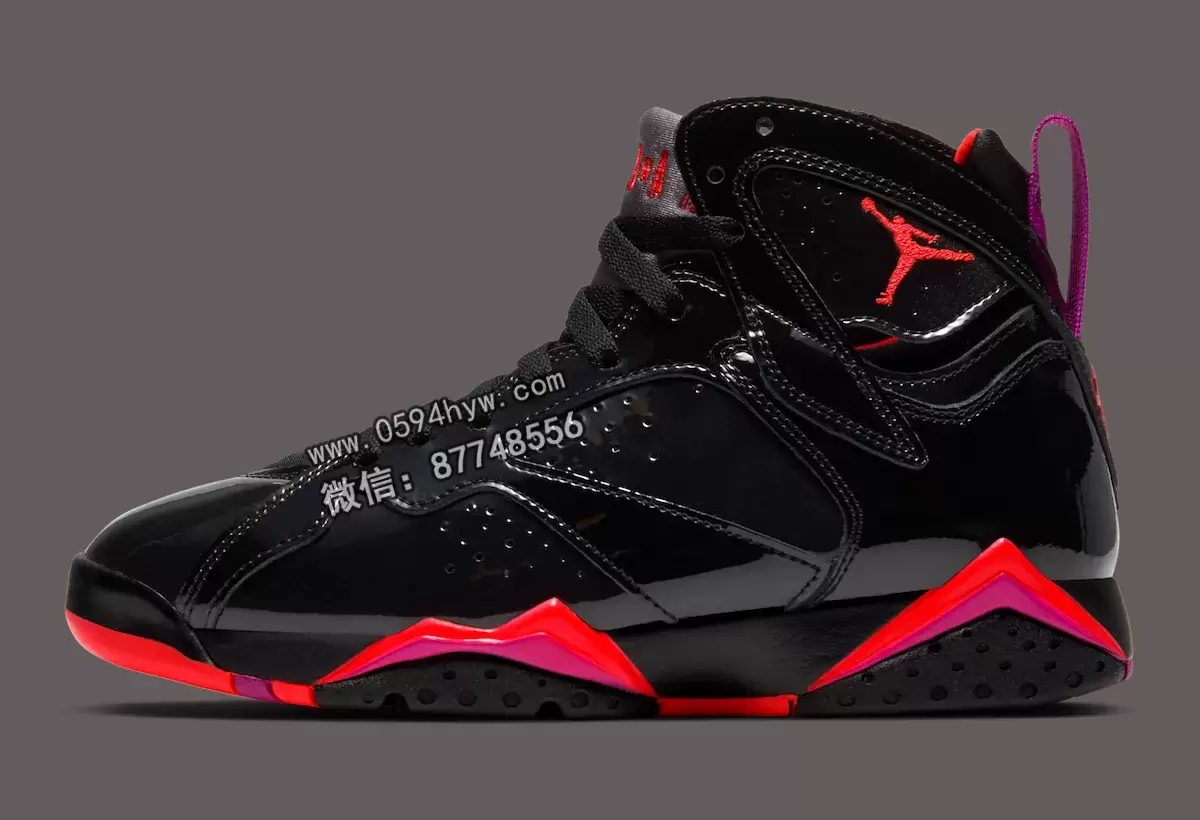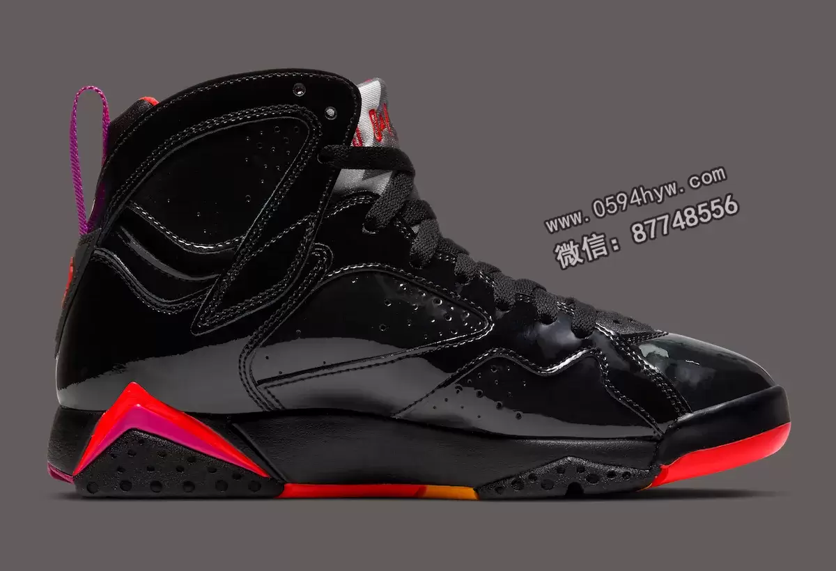 Air Jordan 7 “黑色漆皮 “于 2019 年 10 月发布,为这一传奇鞋款带来了新的变化。这款女式鞋款通常被称为 “黑色亮面 “Air Jordan 7,采用全漆皮鞋面重新演绎了 1992 年的经典设计,无论从字面上还是从风格上看,都立即赋予了它更多的光泽。