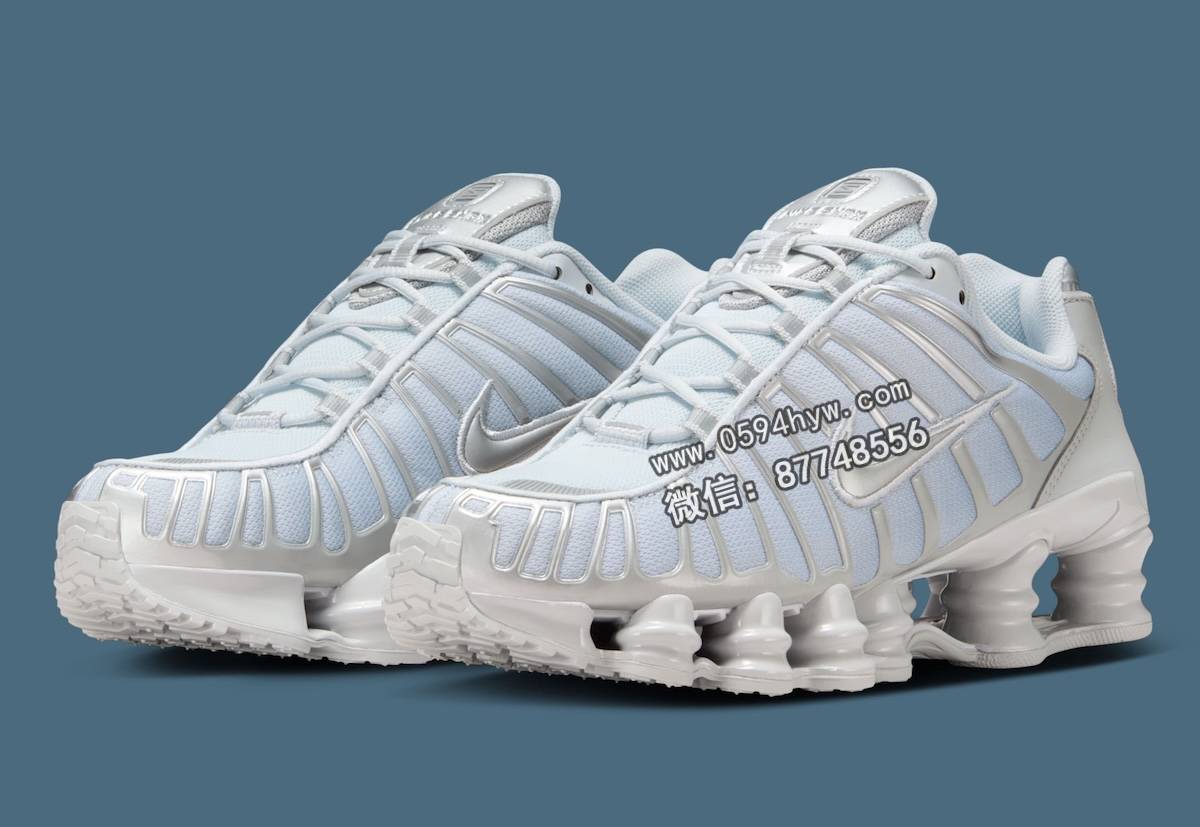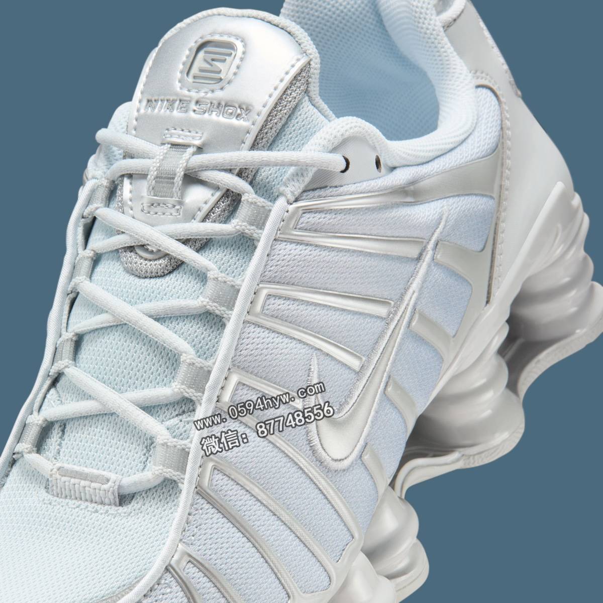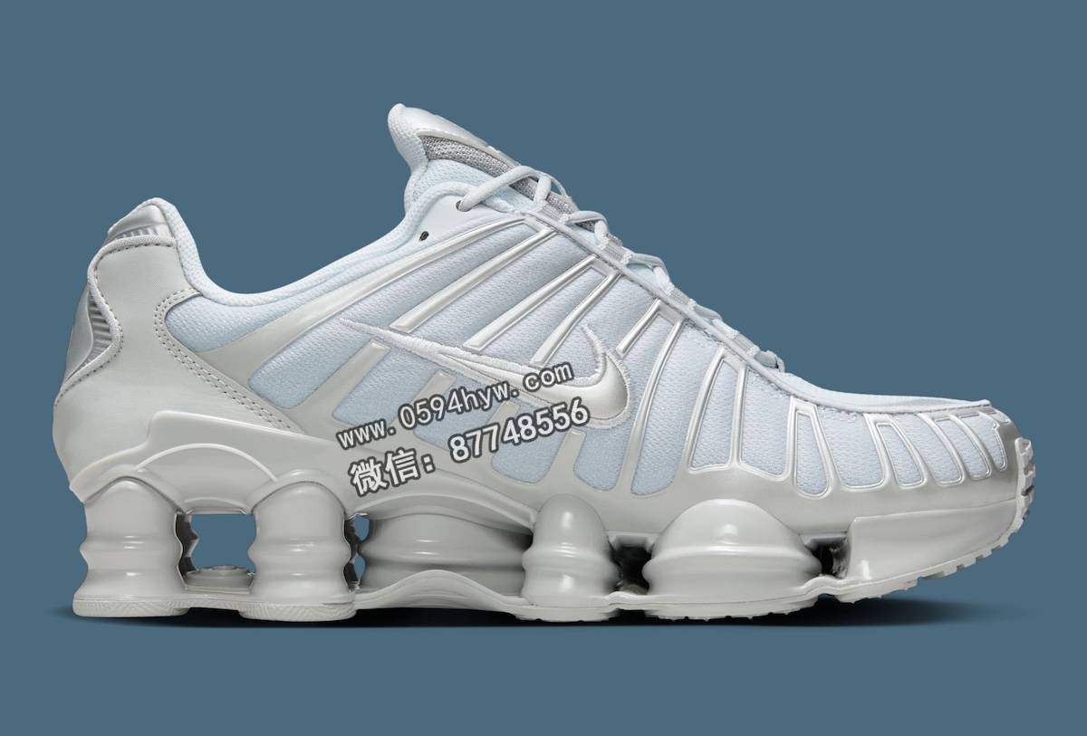 Nike Shox TL “纯铂金/金属银 “鞋款将 2000 年代初的科技风与清新的未来感完美融合。
