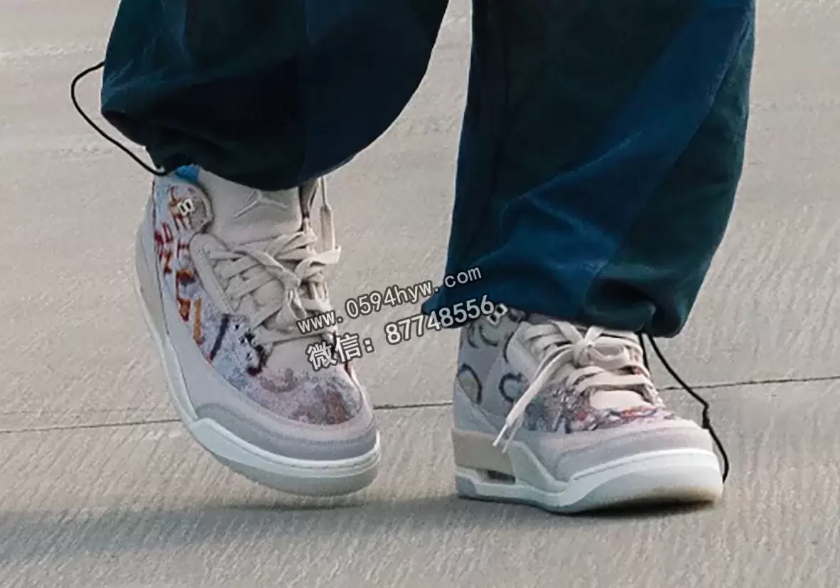 鞋面采用了涂鸦风格的艺术品,让人联想起原图中 MJ 背后的手绘墙。这种借鉴的意味很深,乔丹的长期收藏者一眼就能认出。柔和的奶油色调和柔和的粉色点缀,平衡了大面积的图案,让这款鞋既有表现力,又不失噱头。运动鞋爱好者会注意到这一细节–主题并没有淹没鞋身。