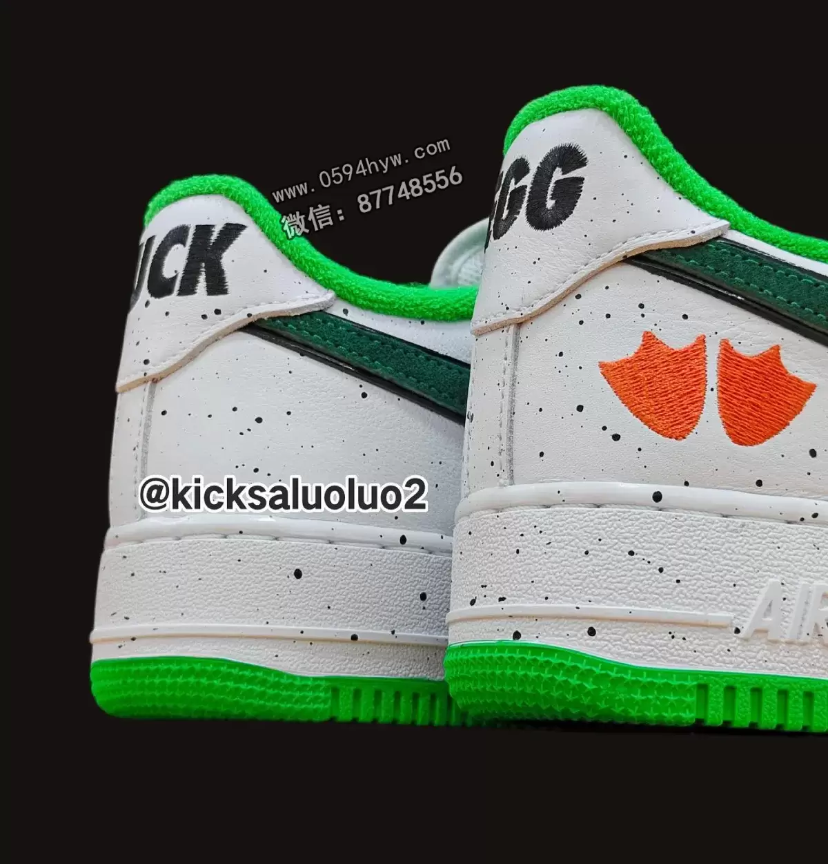 Division Street x Nike Air Force 1 Low “Ducks of a Feather “直接以俄勒冈州为荣。这双鞋并没有迂回地围绕这一主题,而是以学校精神、幽默和对耐克与俄勒冈州长期合作关系的致意拥抱了这一主题。白色的皮革底面简单明了,而俄勒冈州的绿色则在 Swoosh、衬里和外底上大放异彩。对比鲜明,干净利落。