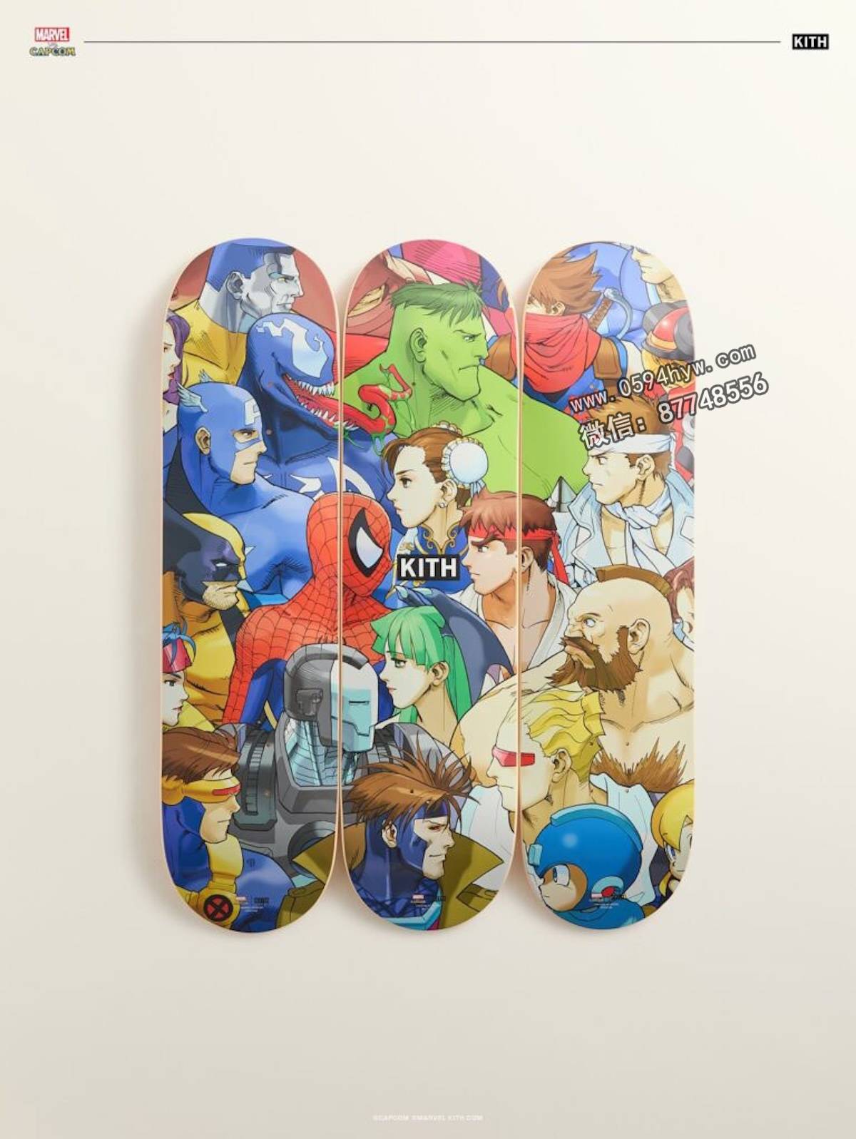 Kith Marvel vs. Capcom 系列将经典街机游戏重新演绎为街头服饰。服装、配饰、滑板、地毯和 ASICS 新系列鞋履都采用了角色驱动设计。